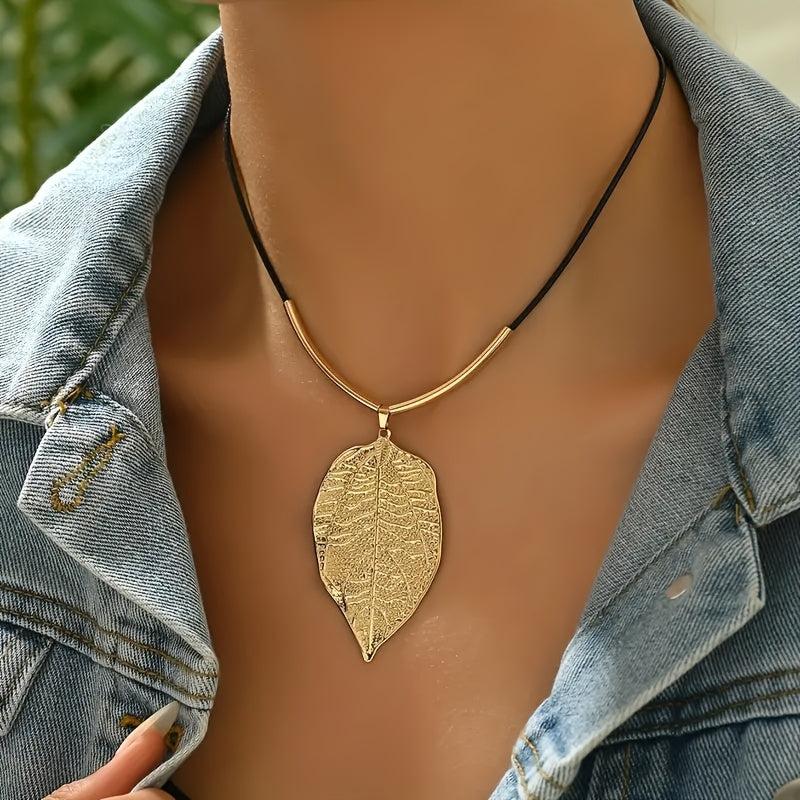 Elevate your style with this Bohemian Golden Leaf Pendant Necklace. Made of 14K golden plated alloy, it features a delicate chain and is perfect for daily wear, parties, and music festivals.