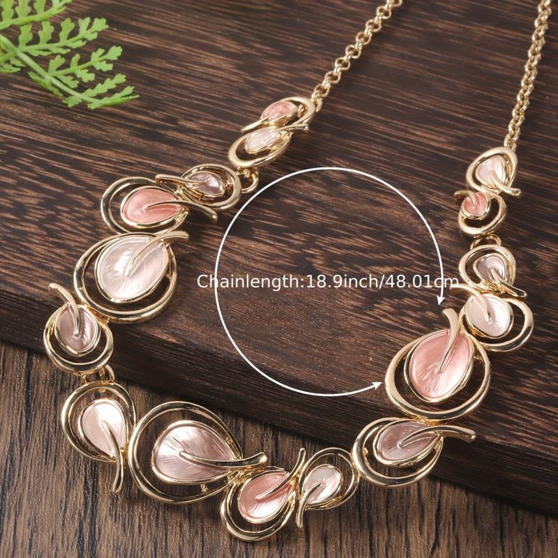 This 2pcs Earrings and 1pc Necklace Set features a bohemian leaf design, made of zinc alloy with a thin coating process. Perfect for daily wear, dance parties, holidays, and music events.