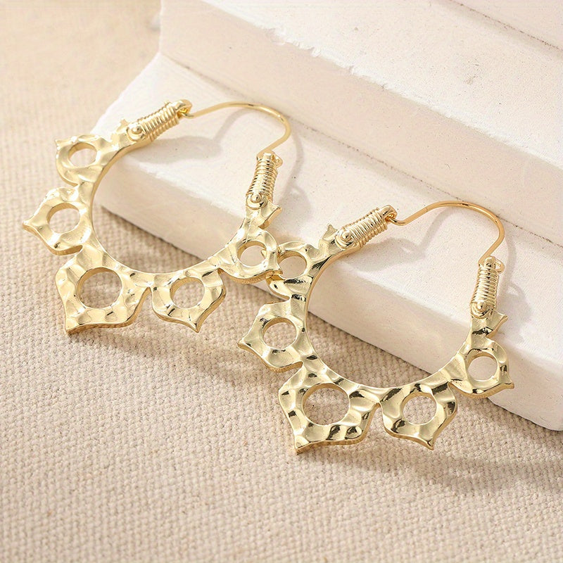 These vintage lotus flower hoop earrings are ideal for daily wear and make a great Mother's gift. They are crafted in golden plated copper and have a bohemian style.