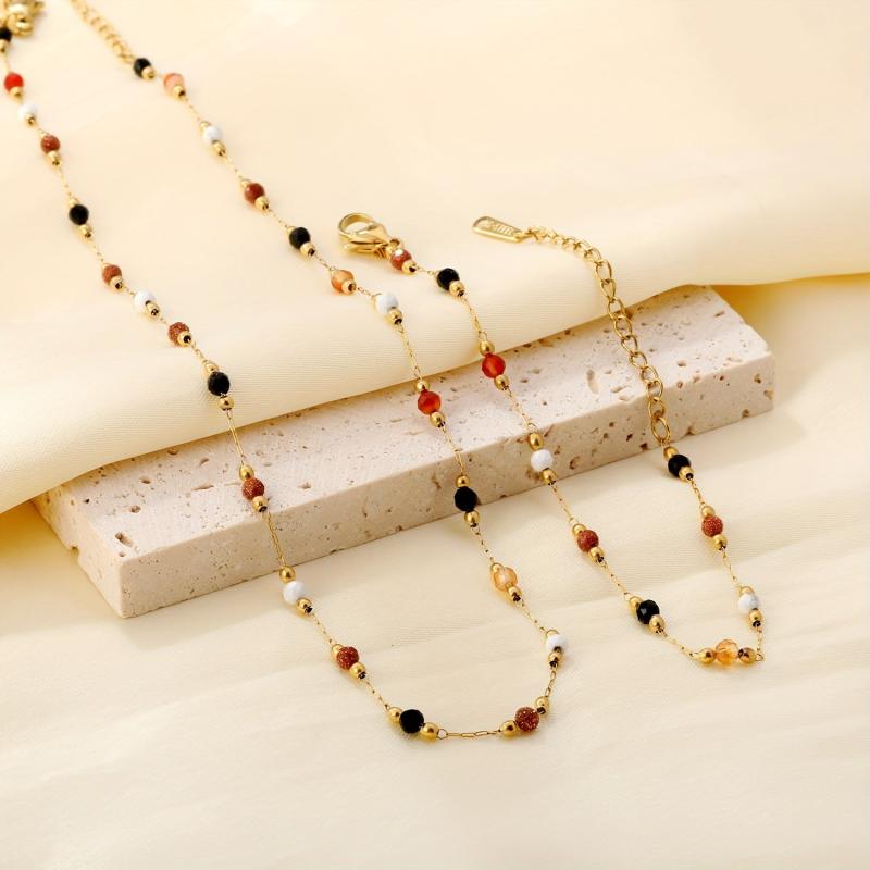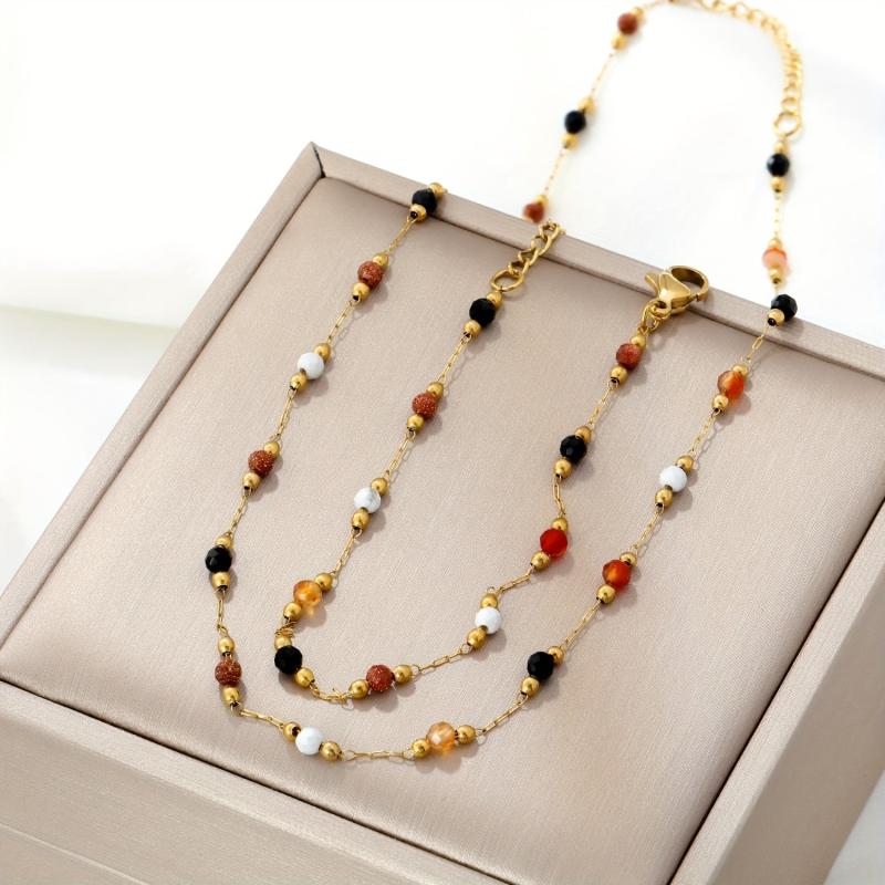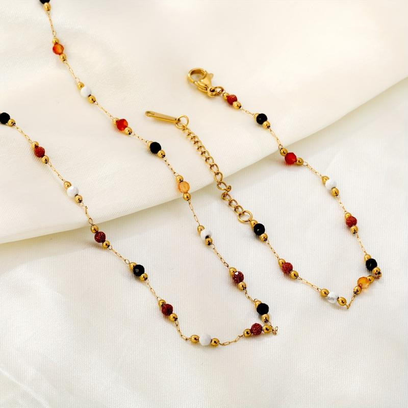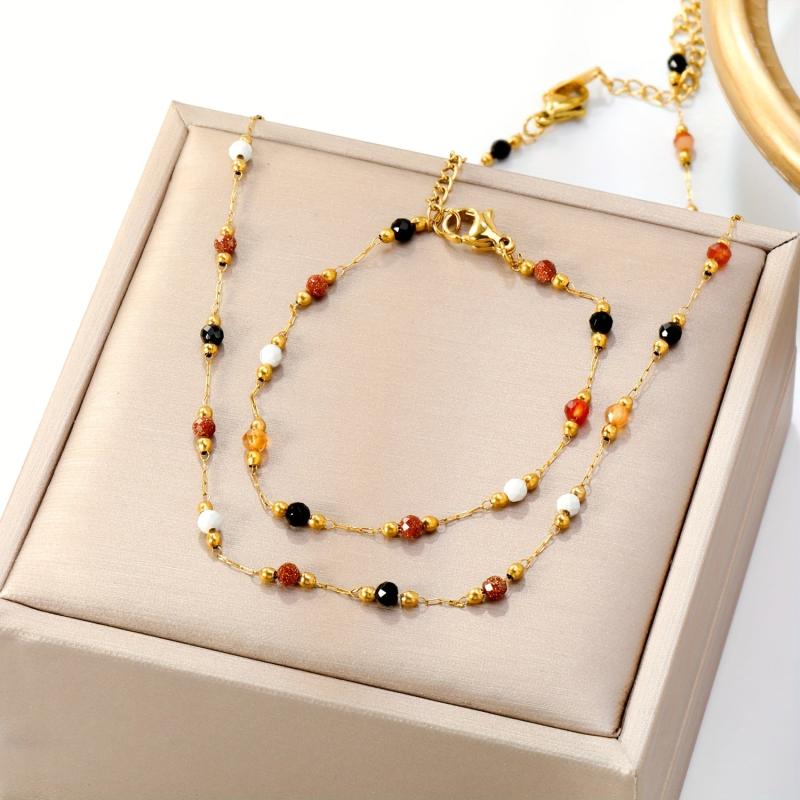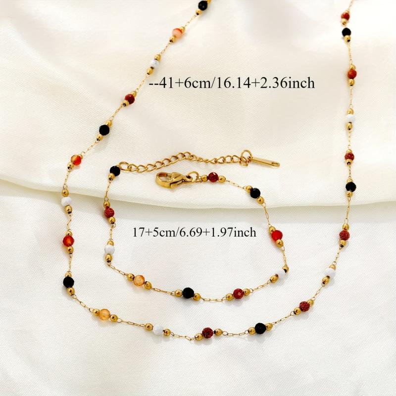 Bohemian Style Stone Necklace Bracelet Set, Stainless Steel