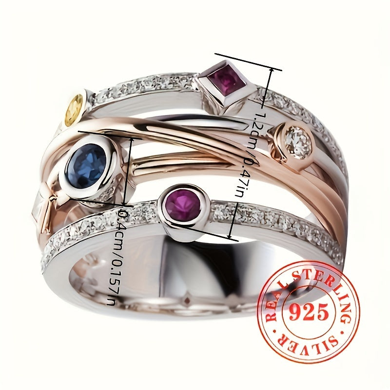 Elevate your look with this vintage boho-inspired ring featuring multicolor synthetic zirconia stones. This wide band ring is perfect for daily wear with its unique design and dual-tone finish.