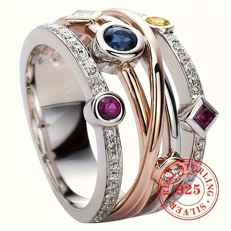 Boho Style 925 Silver Dual Tone Layer Ring with Zirconia Stones