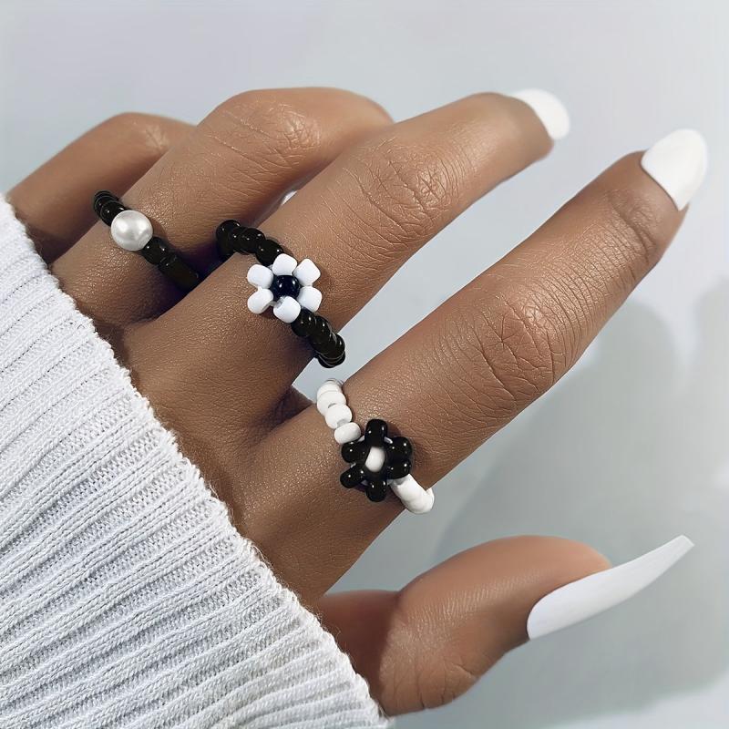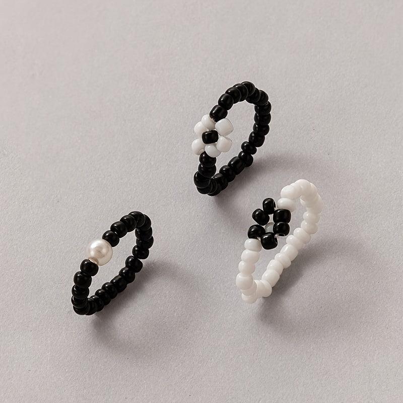 Elevate your style with this set of 3 stackable rings, featuring a classic and beaded design. Perfect for stacking or wearing individually.