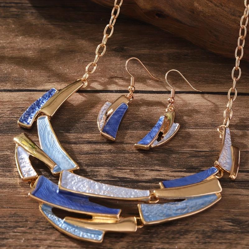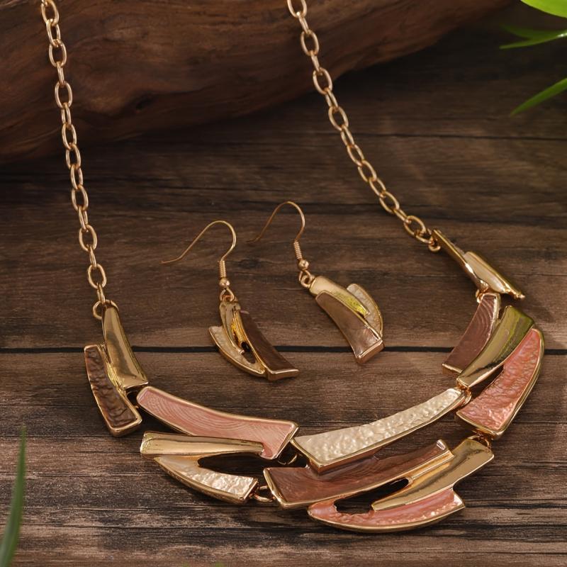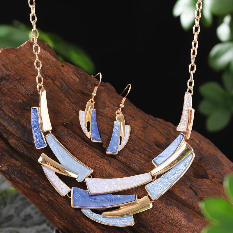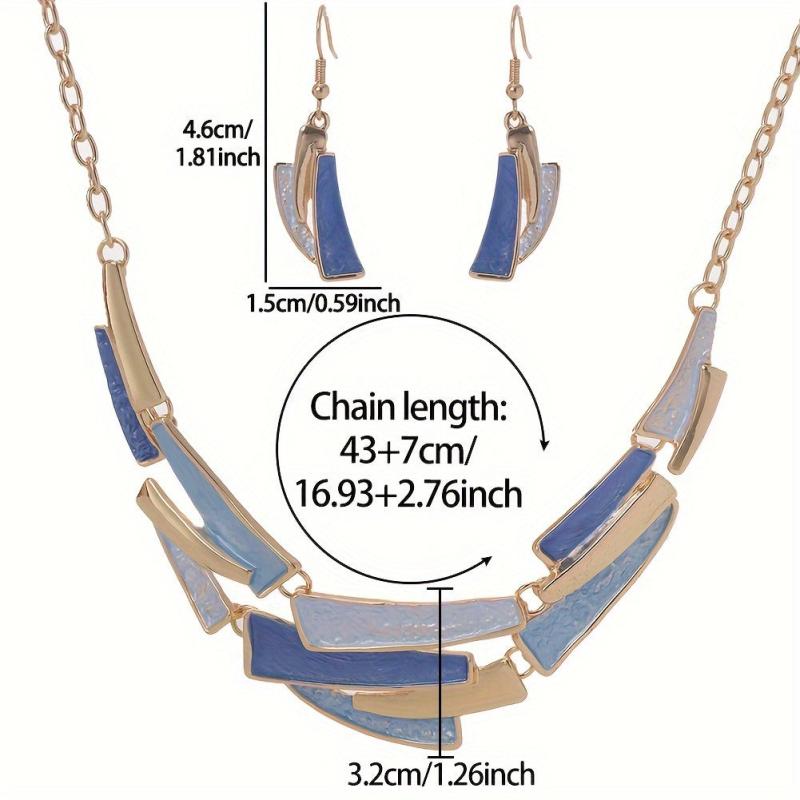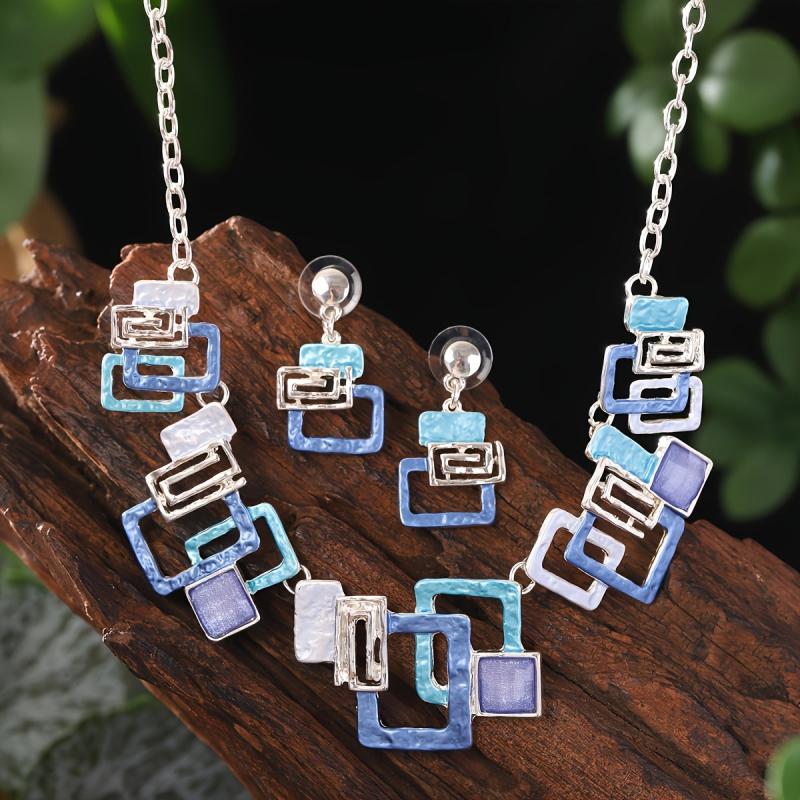 Colorful Enamel Geometry Jewelry Set - Earrings & Necklace