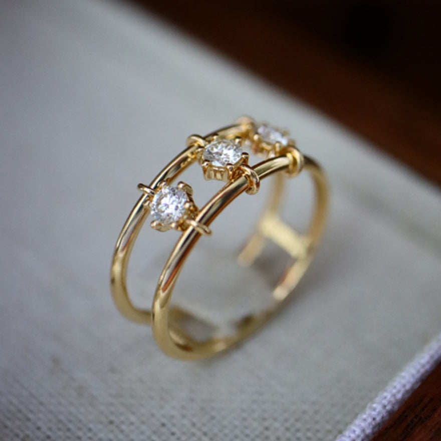 Add a touch of elegance with this minimalist copper ring featuring synthetic zirconia accents. Perfect for both casual and party wear, this ring is ideal for April-born individuals.