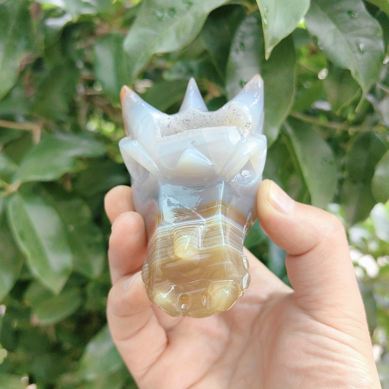 This intricately carved crystal ornament is perfect for adding a touch of elegance to your home decor or creating a calming atmosphere for meditation.