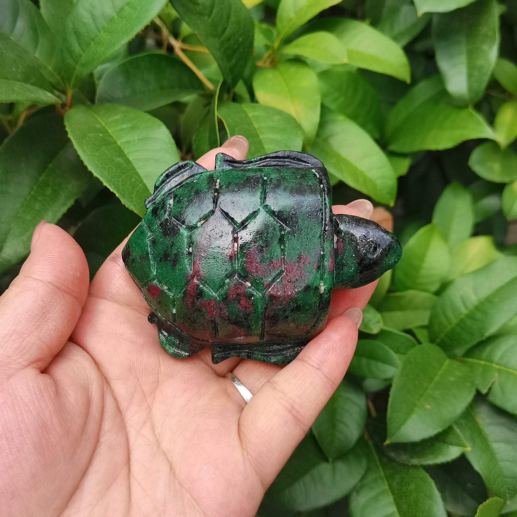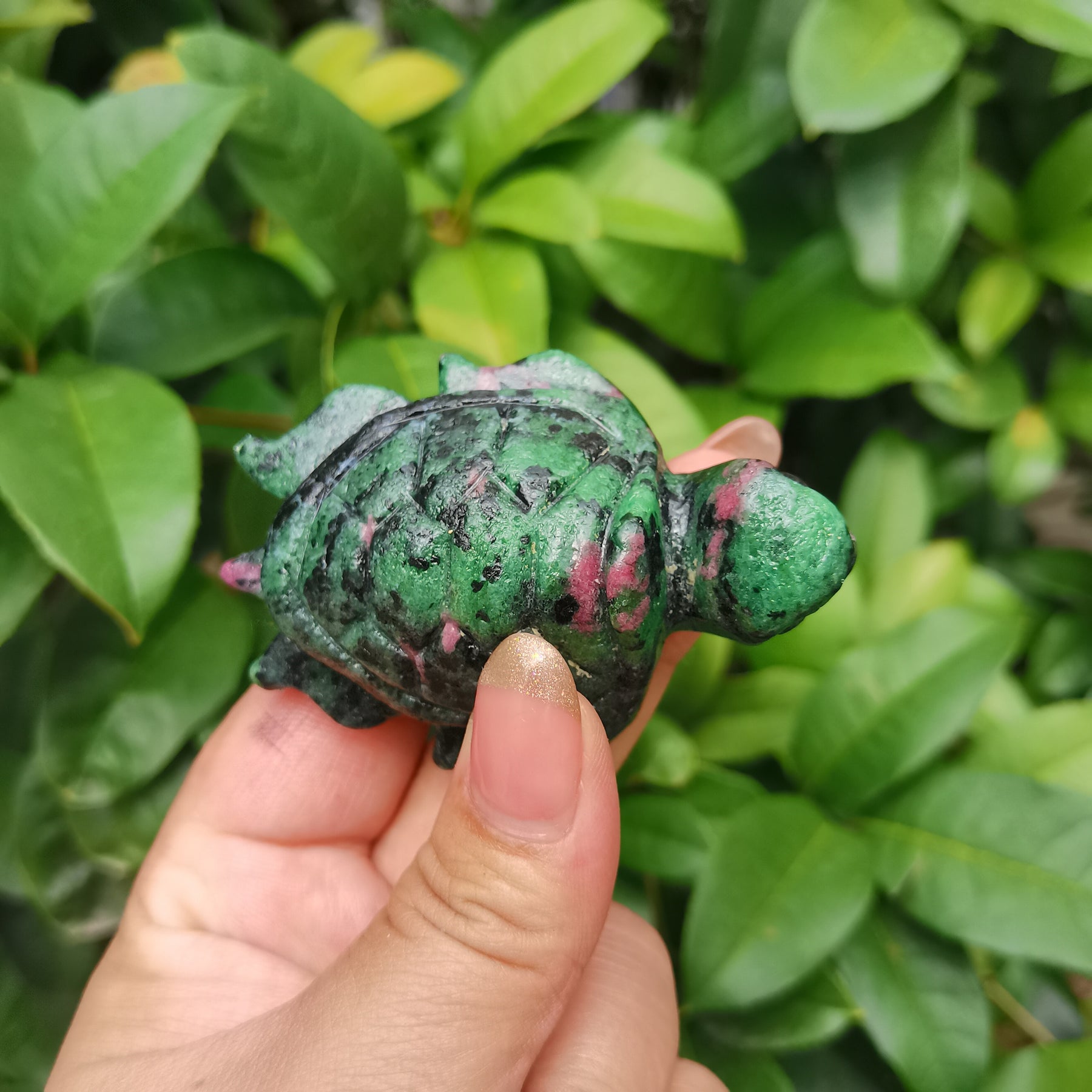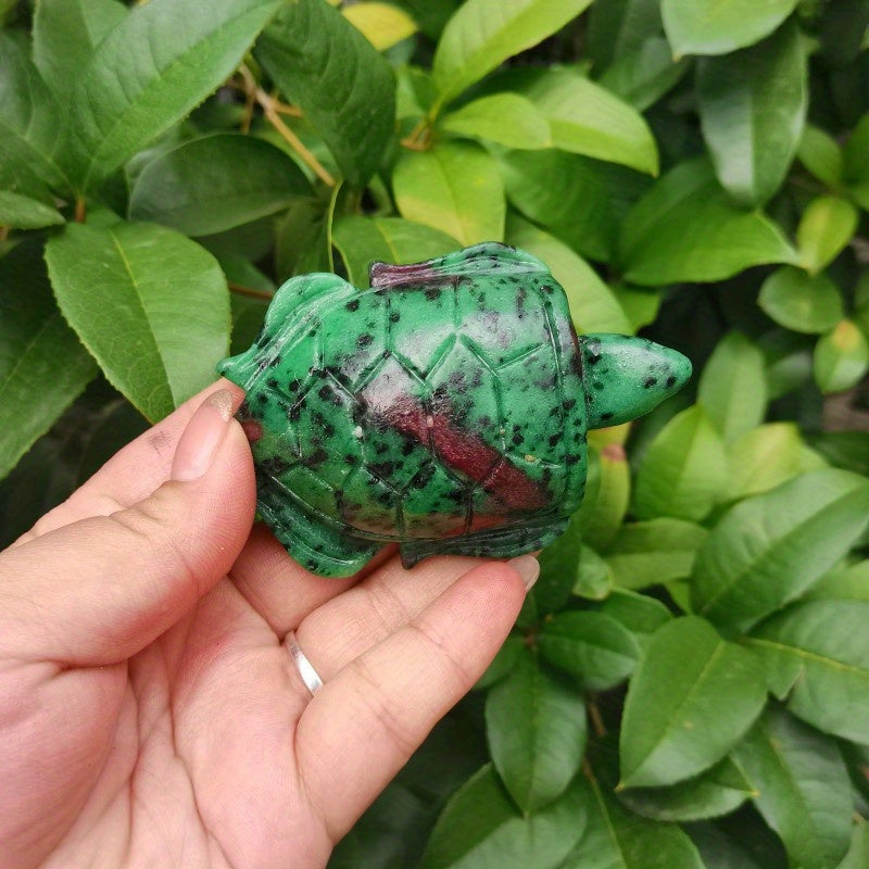 Enhance your décor with this exquisite crystal turtle ornament featuring red and green hues. Perfect for tabletop display.