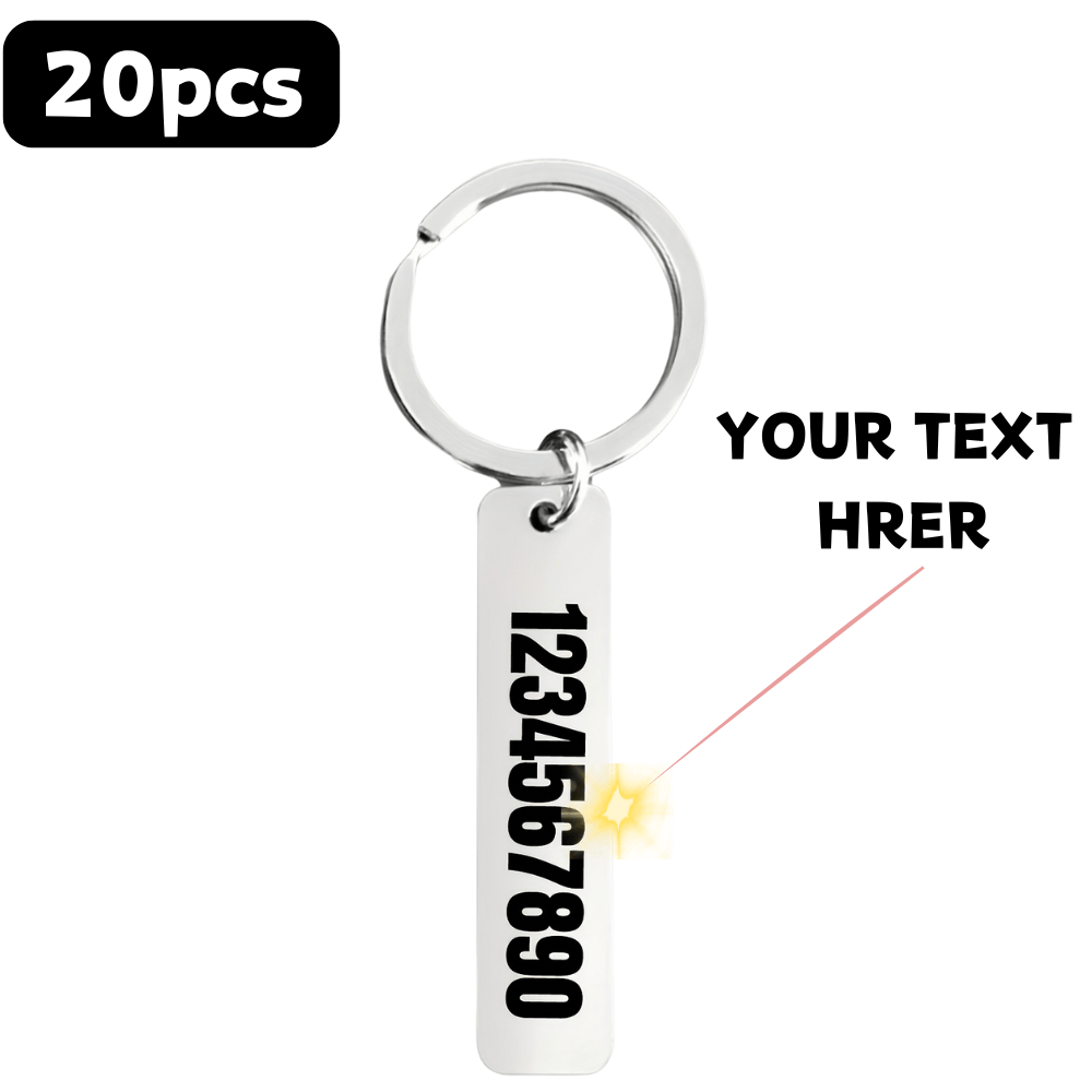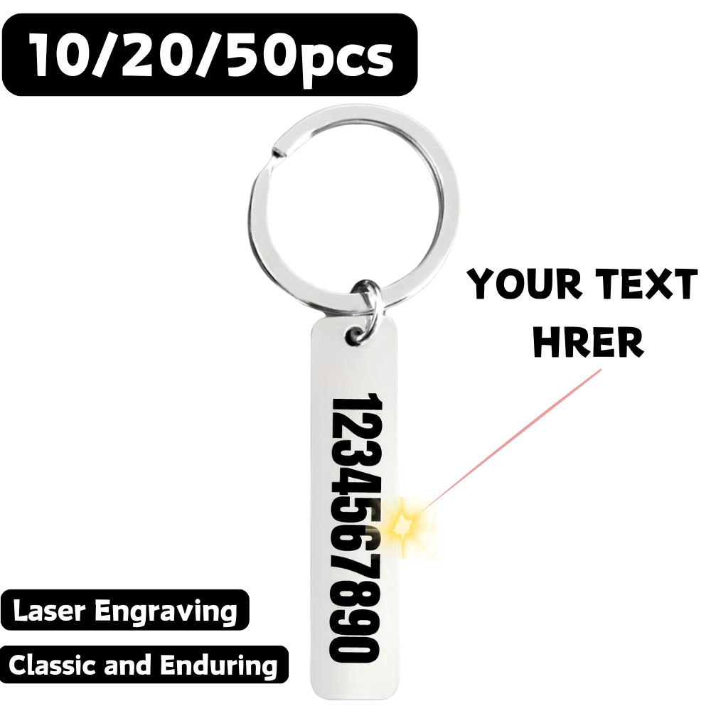 Keep your keys safe with this personalized stainless steel keychain featuring laser engraved name and phone number. Ideal for pet owners, this dog tag package includes 10, 20, or 50 pieces. Perfect for car and home accessories.