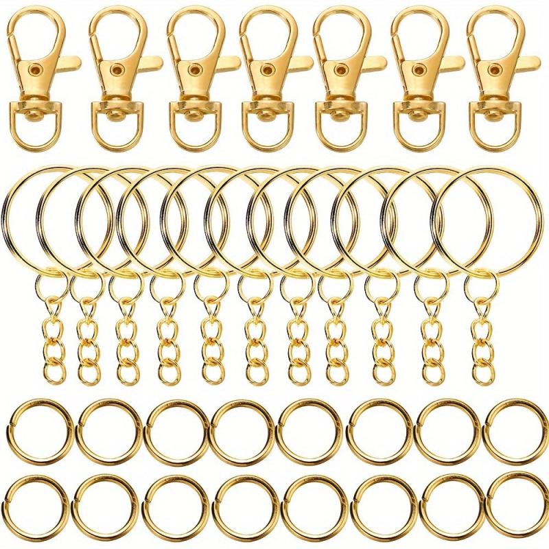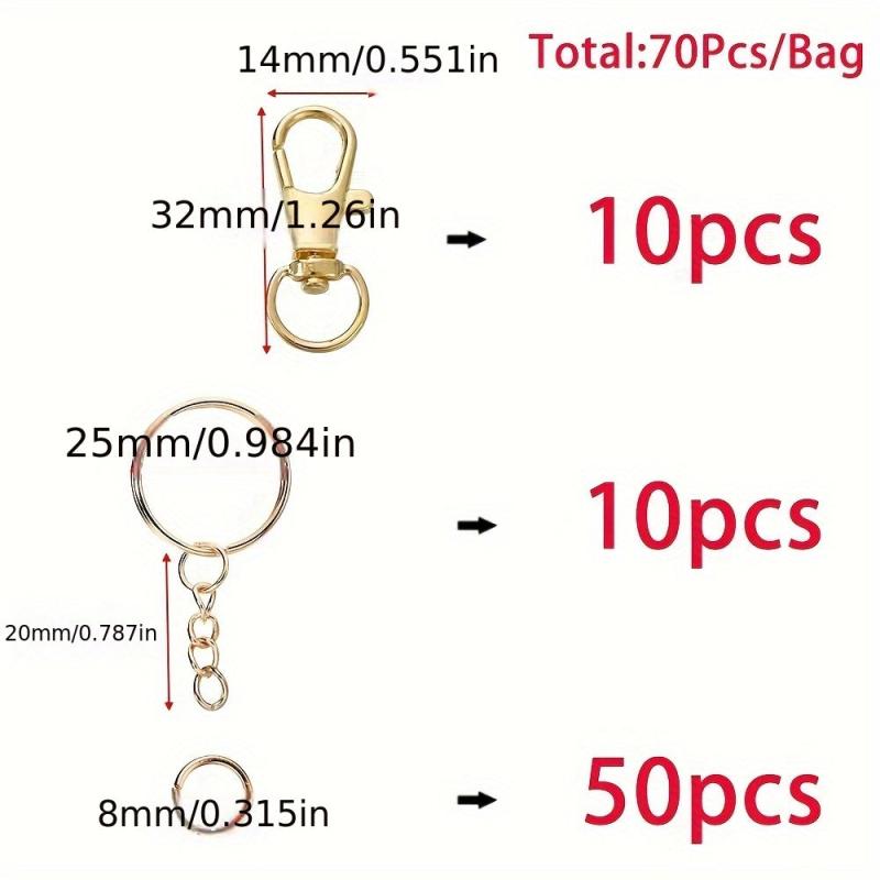 Create personalized accessories with this 70-piece craft set. Includes swivel snap hooks, jump rings, and chains. Perfect for making keychains, necklaces, and more.