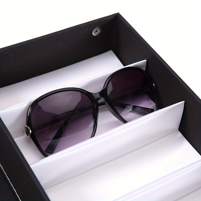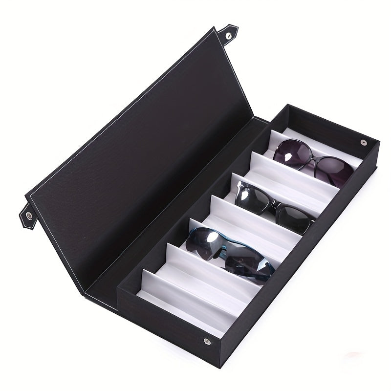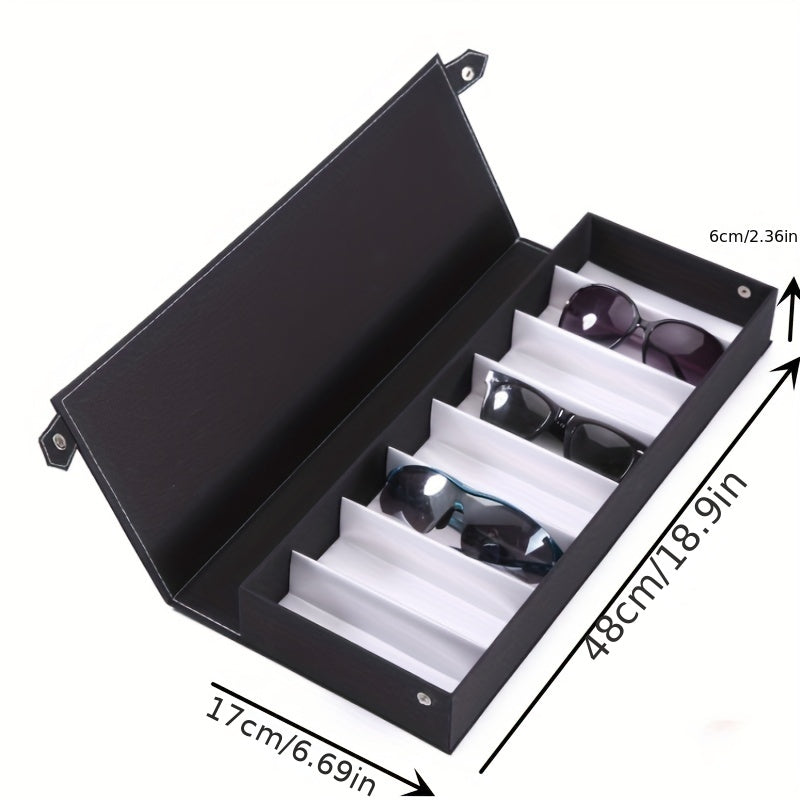 Keep your glasses organized and protected with this dustproof storage box that also functions as a sunglasses display stand.