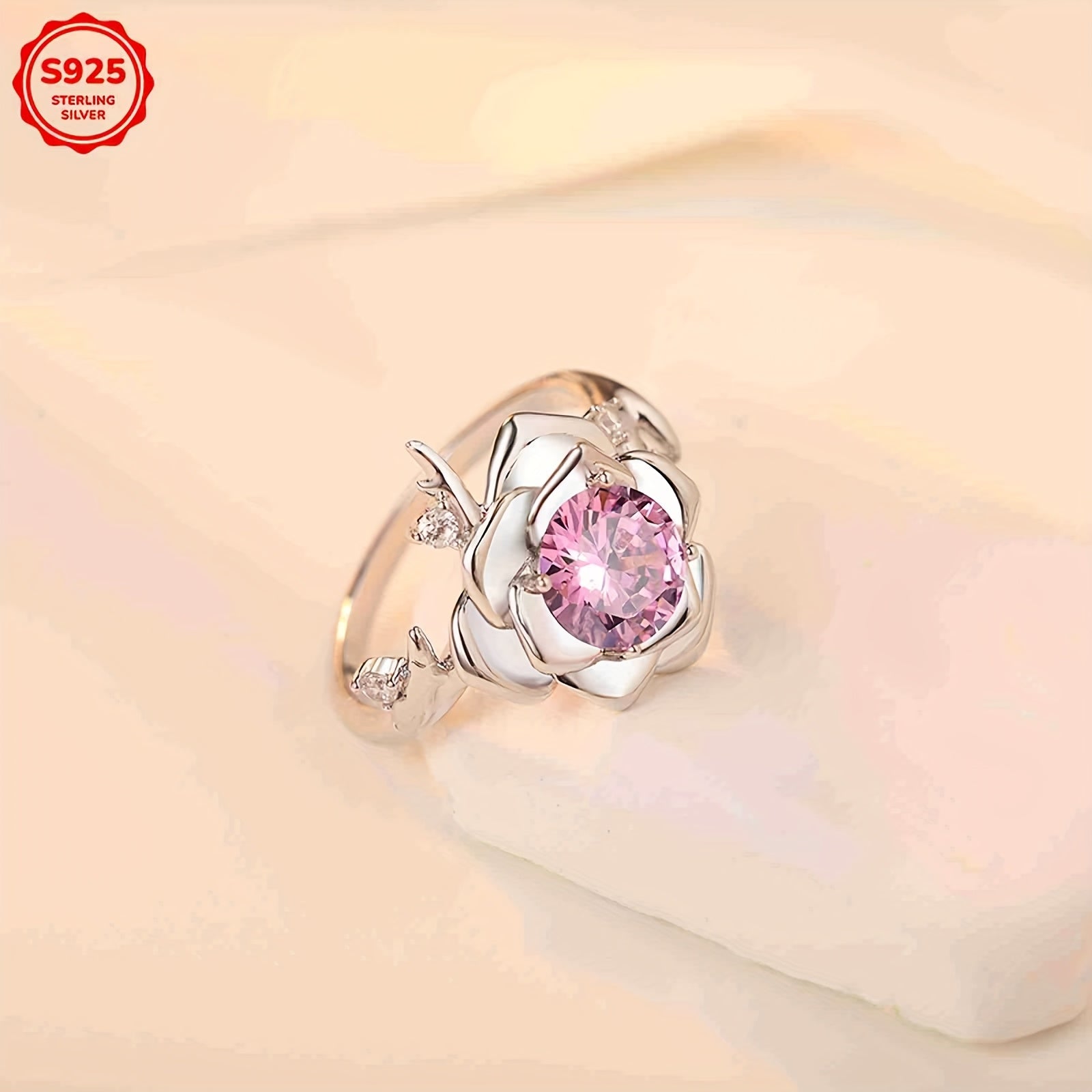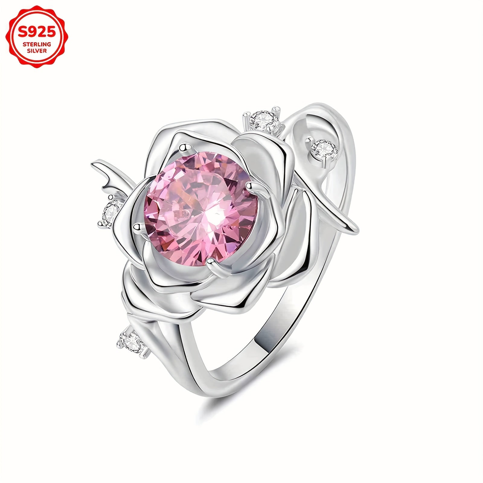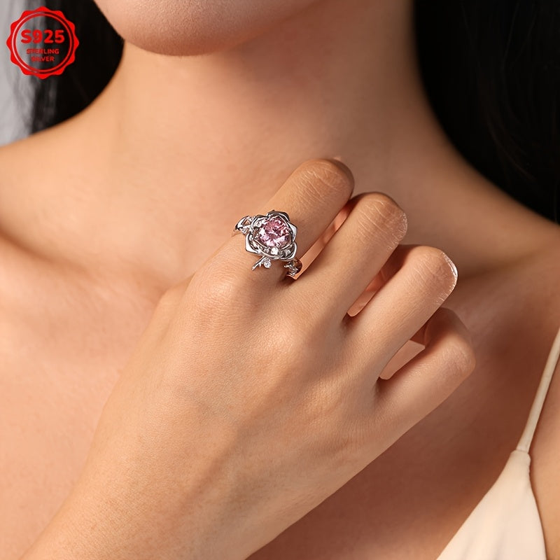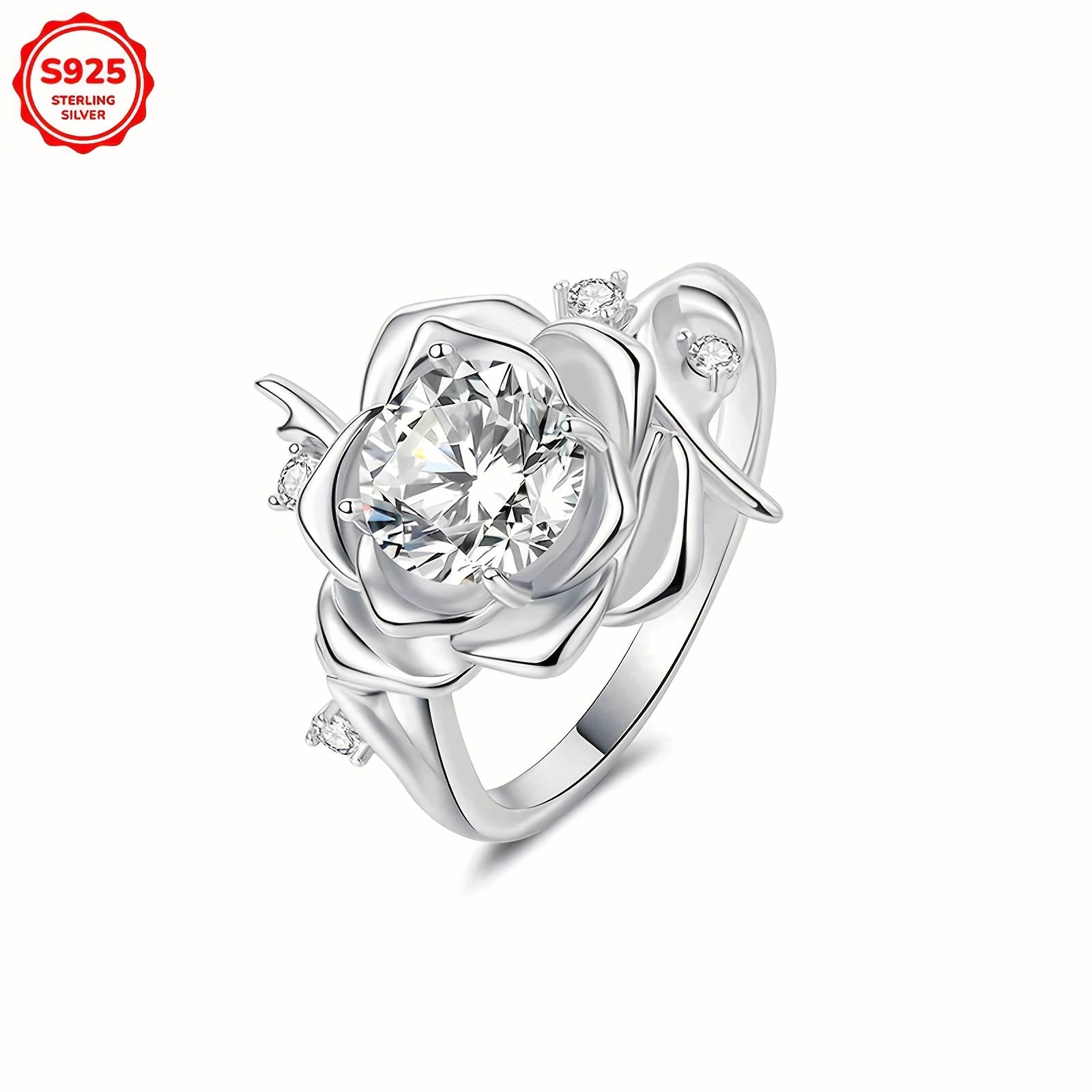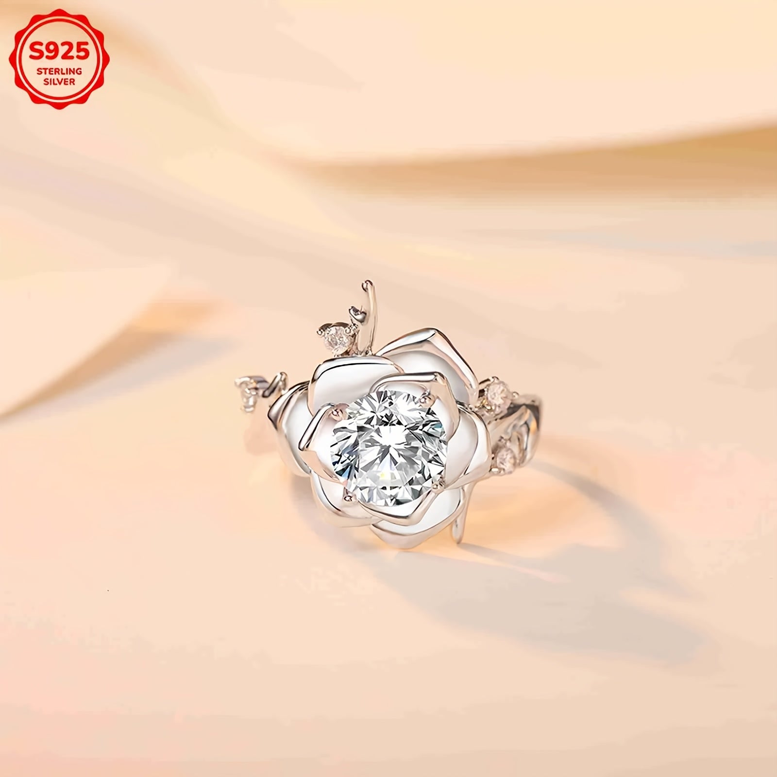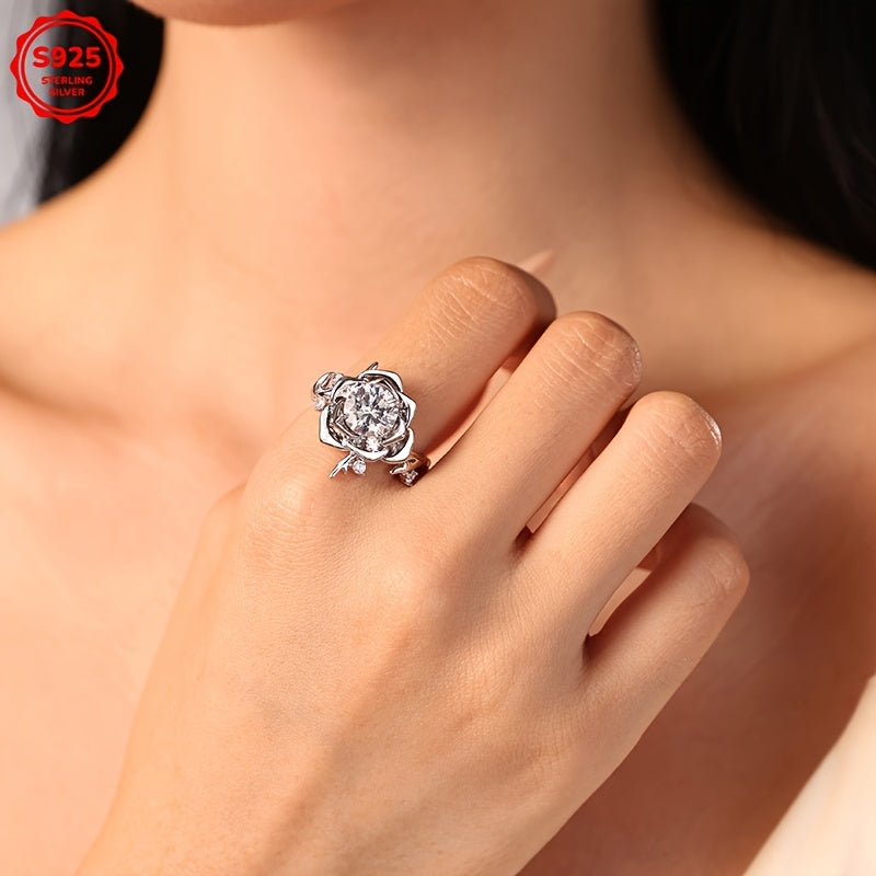 Elegant S925 Silver Rose Ring with Zirconia Accents for Women