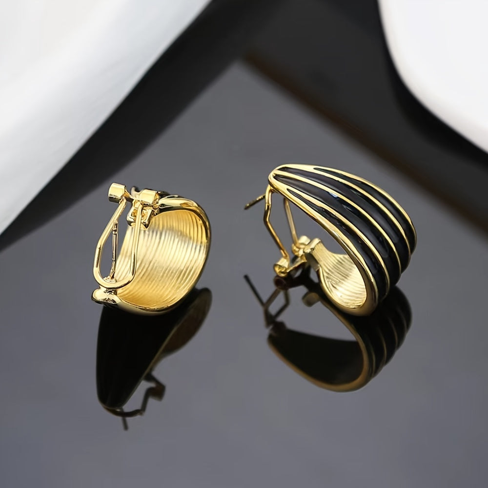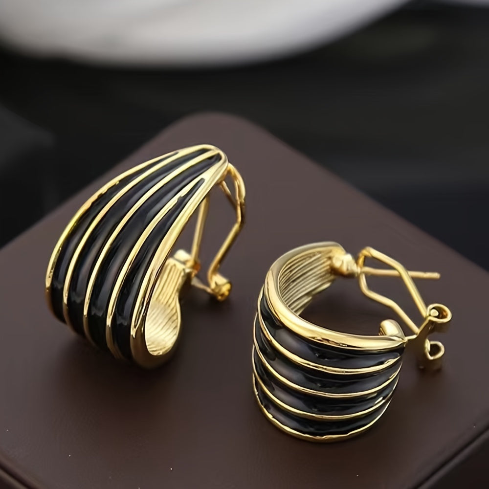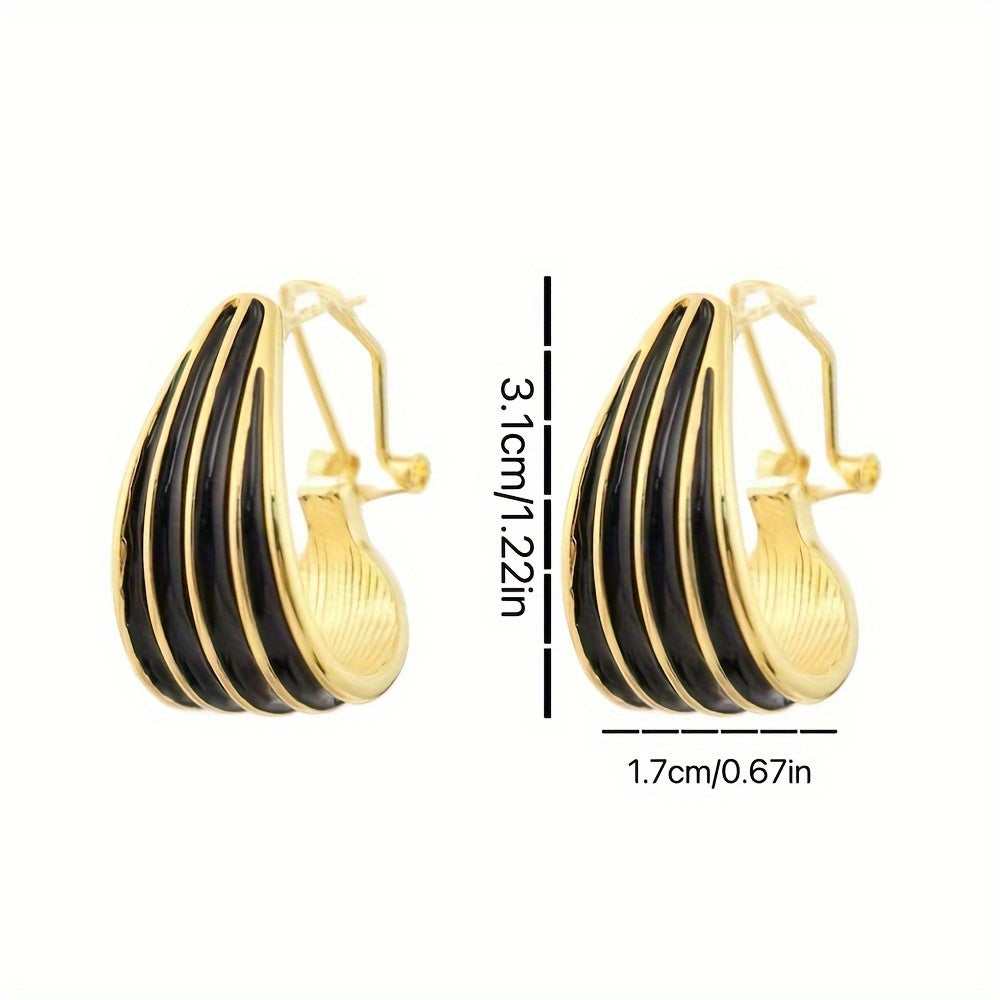 Add a touch of vintage glam with these 18K golden plated enamel hoop earrings. Hypoallergenic and ideal for weddings, banquets, and more.