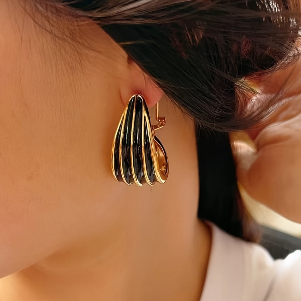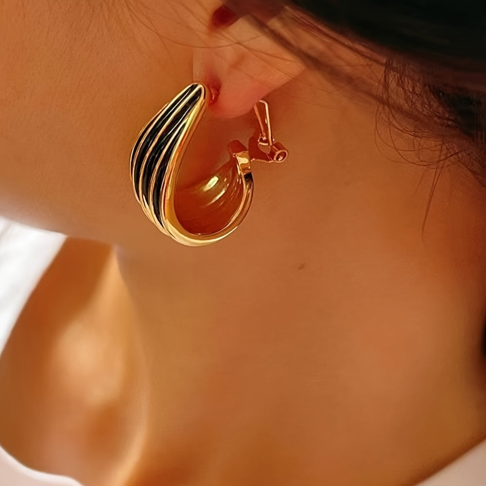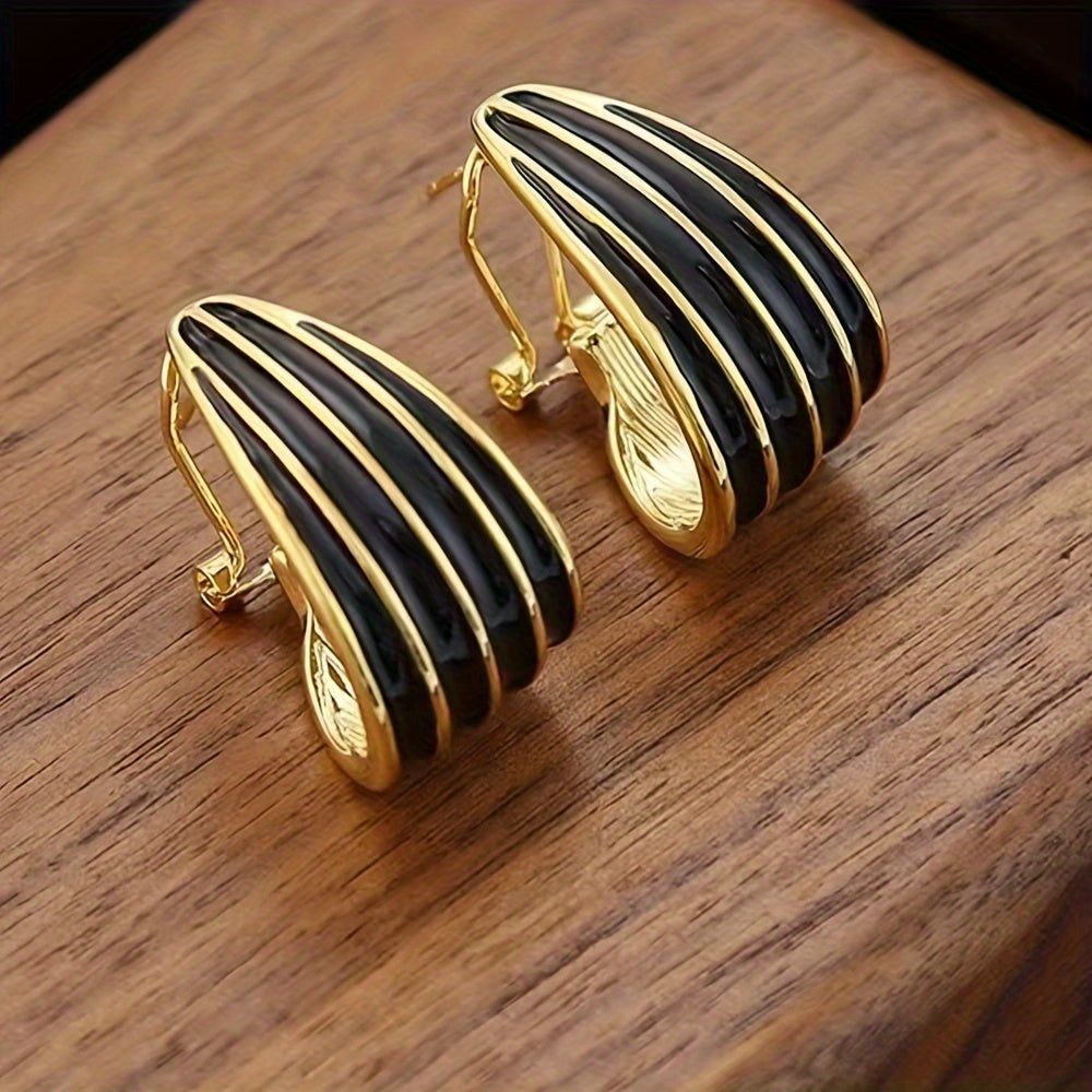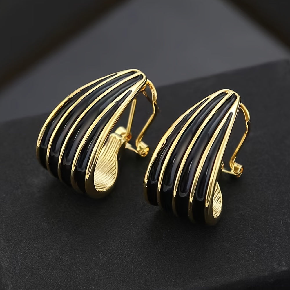 Add a touch of vintage glam with these 18K golden plated enamel hoop earrings. Hypoallergenic and ideal for weddings, banquets, and more.