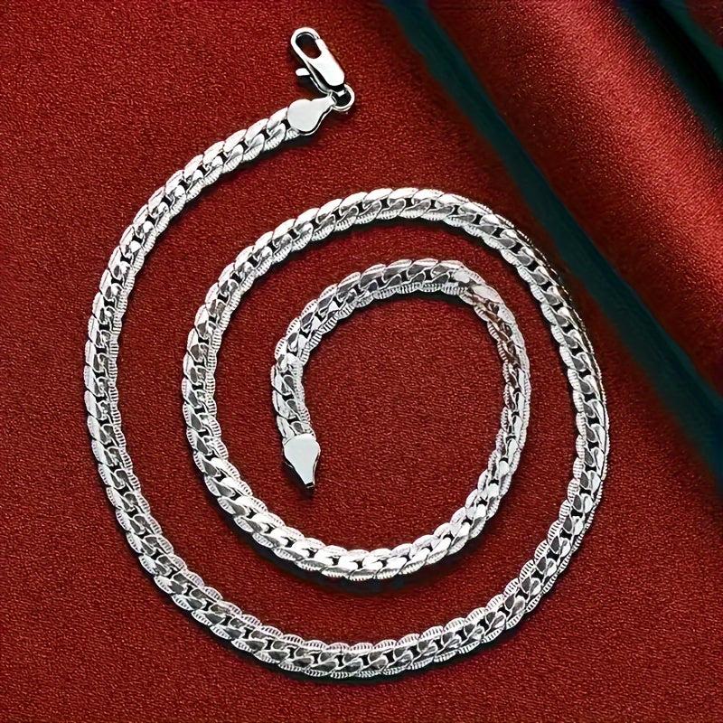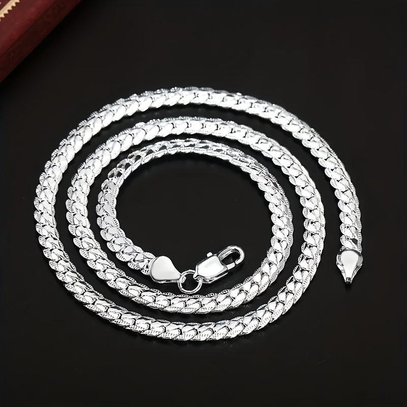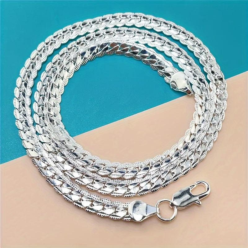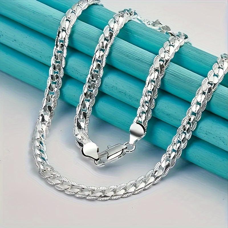Elevate your style with this trendy silver double sided embossed necklace that is suitable for both men and women. Perfect for casual and party occasions.