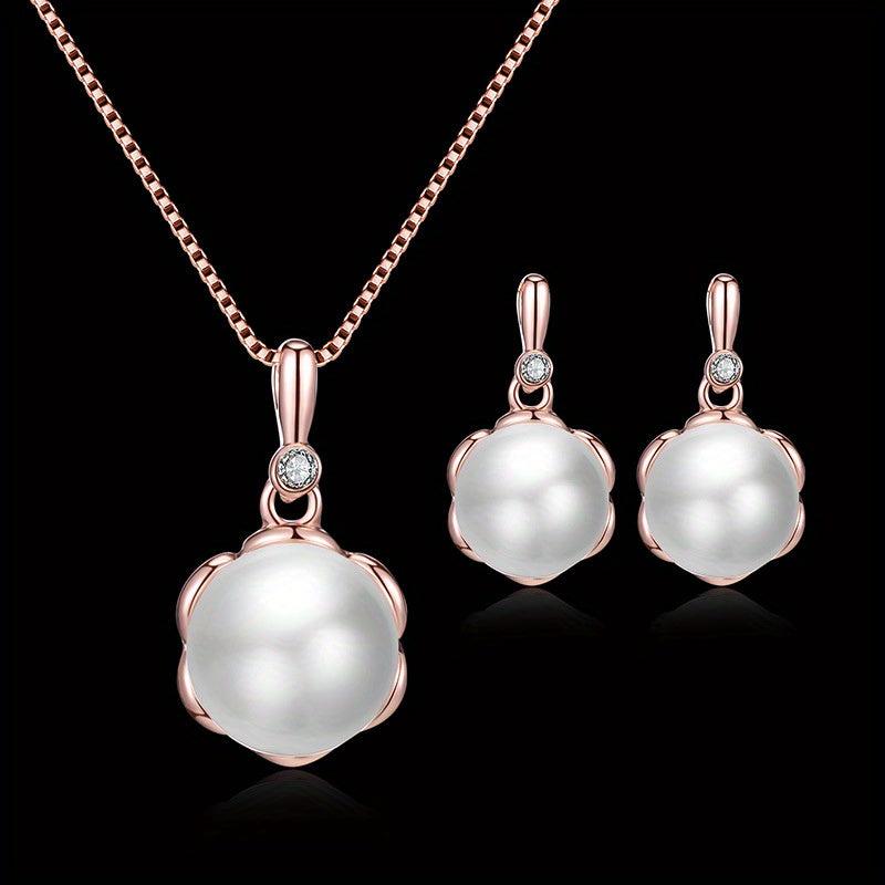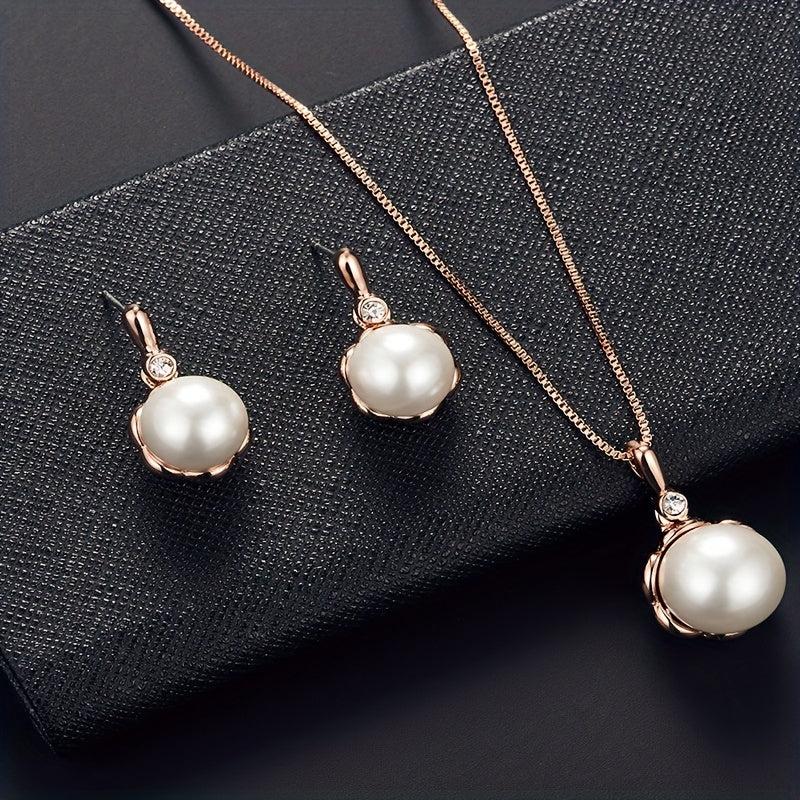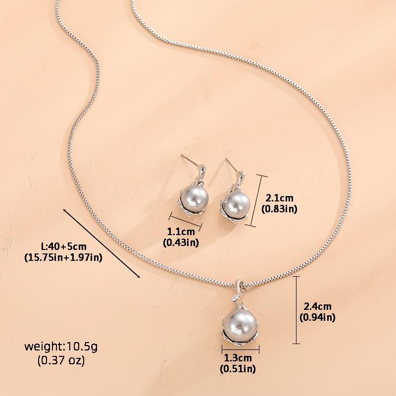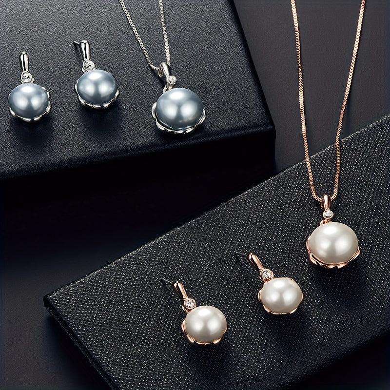 Beautifully crafted jewelry set featuring inlaid faux pearls, includes a pendant necklace and matching stud earrings, perfect for gifting to relatives and friends.
