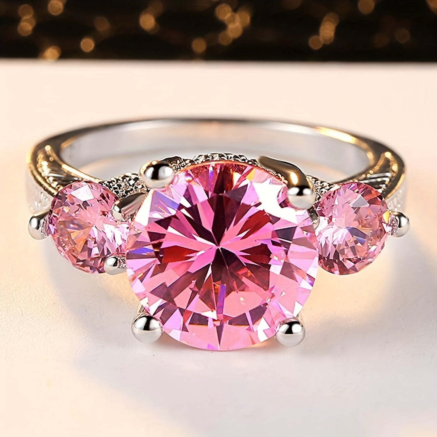 Elegant pink stone ring with a silvery finish, ideal for weddings and special occasions.