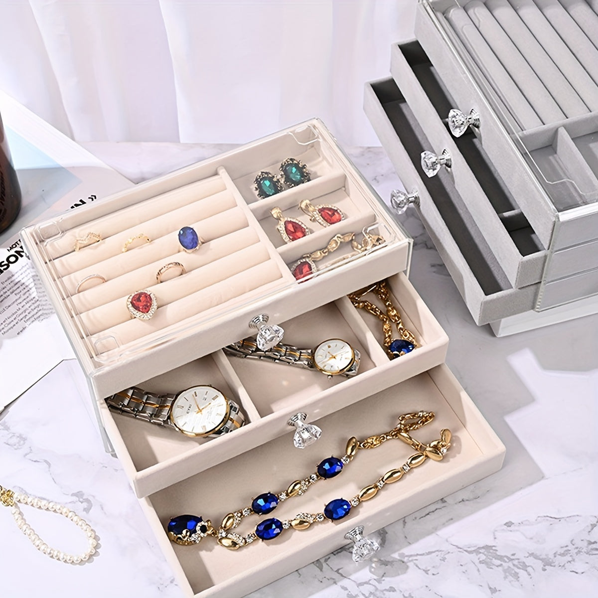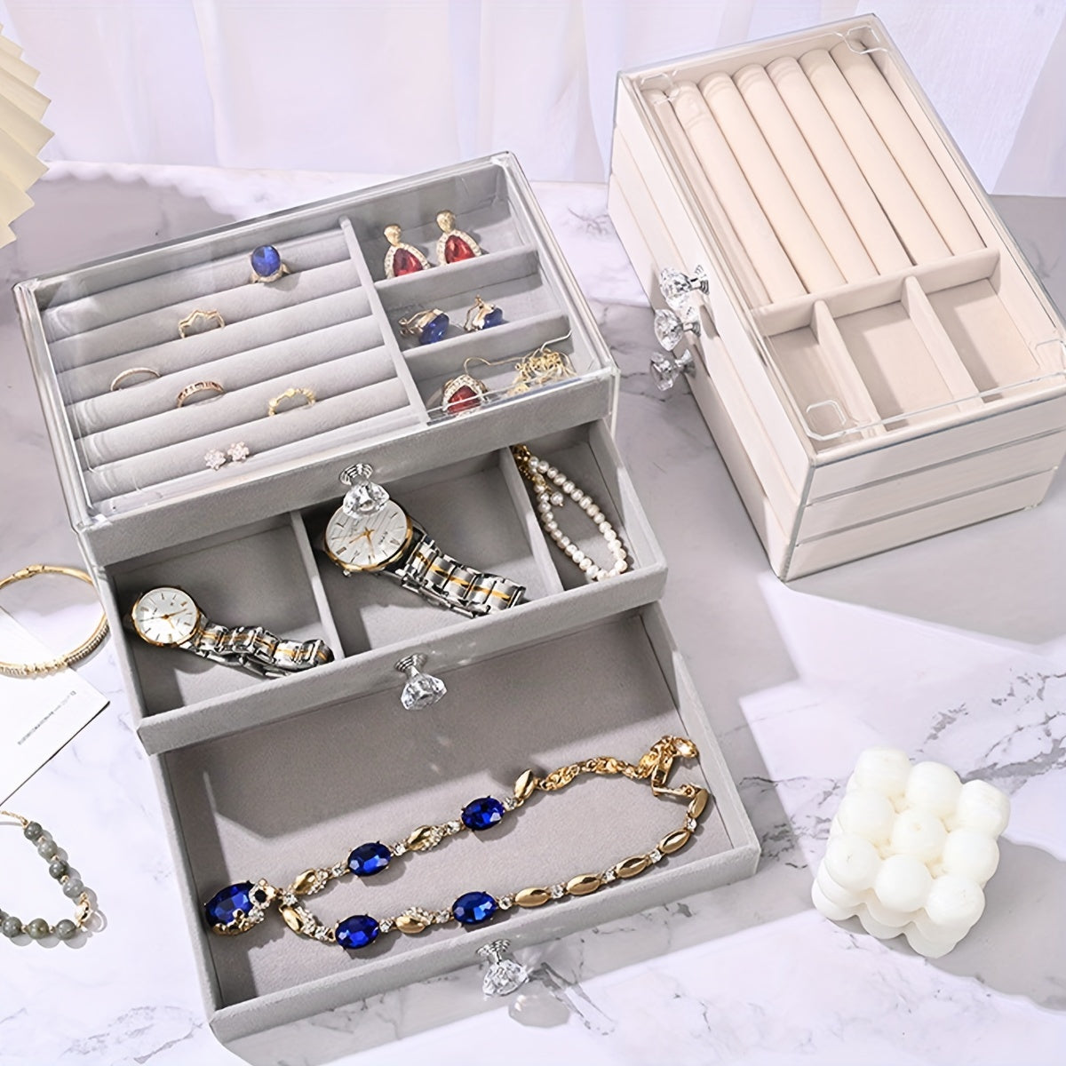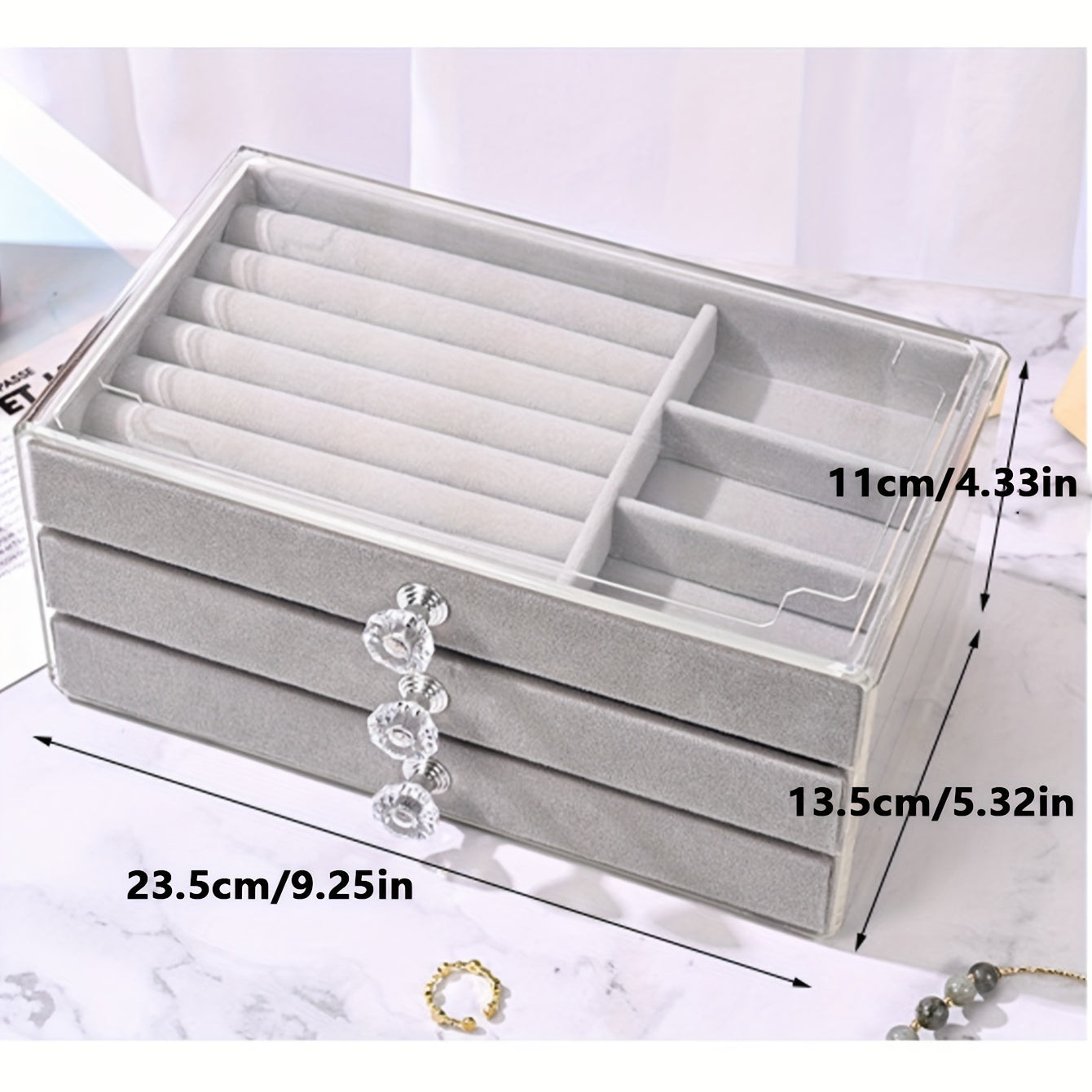 Keep your earrings and jewelry organized with this stylish flannel storage box. Perfect for your dressing table, it helps prevent dust from settling on your precious items.
