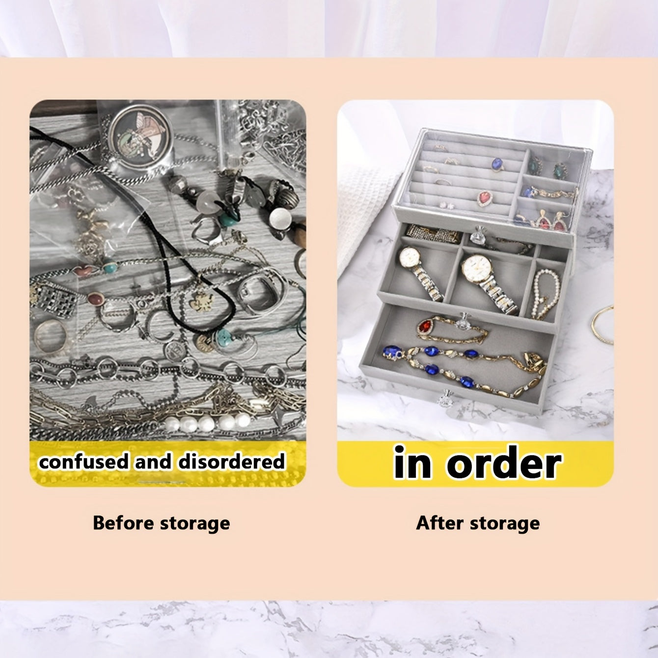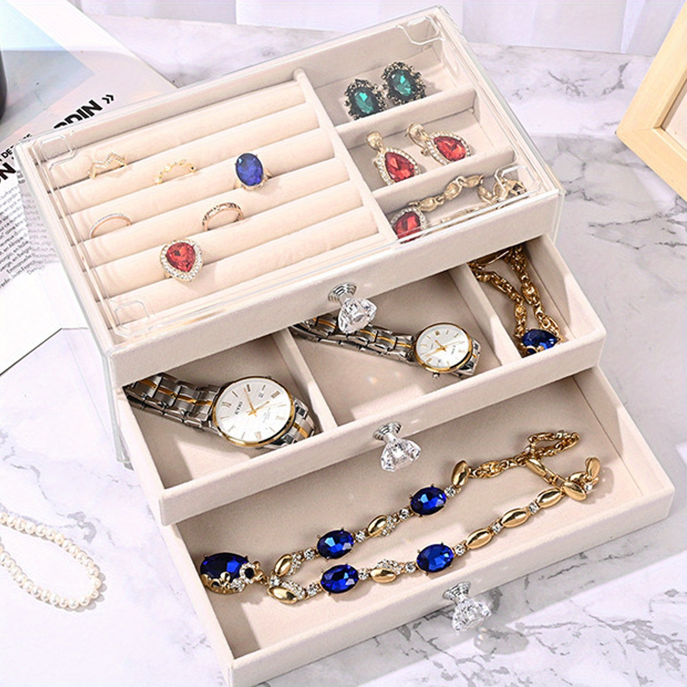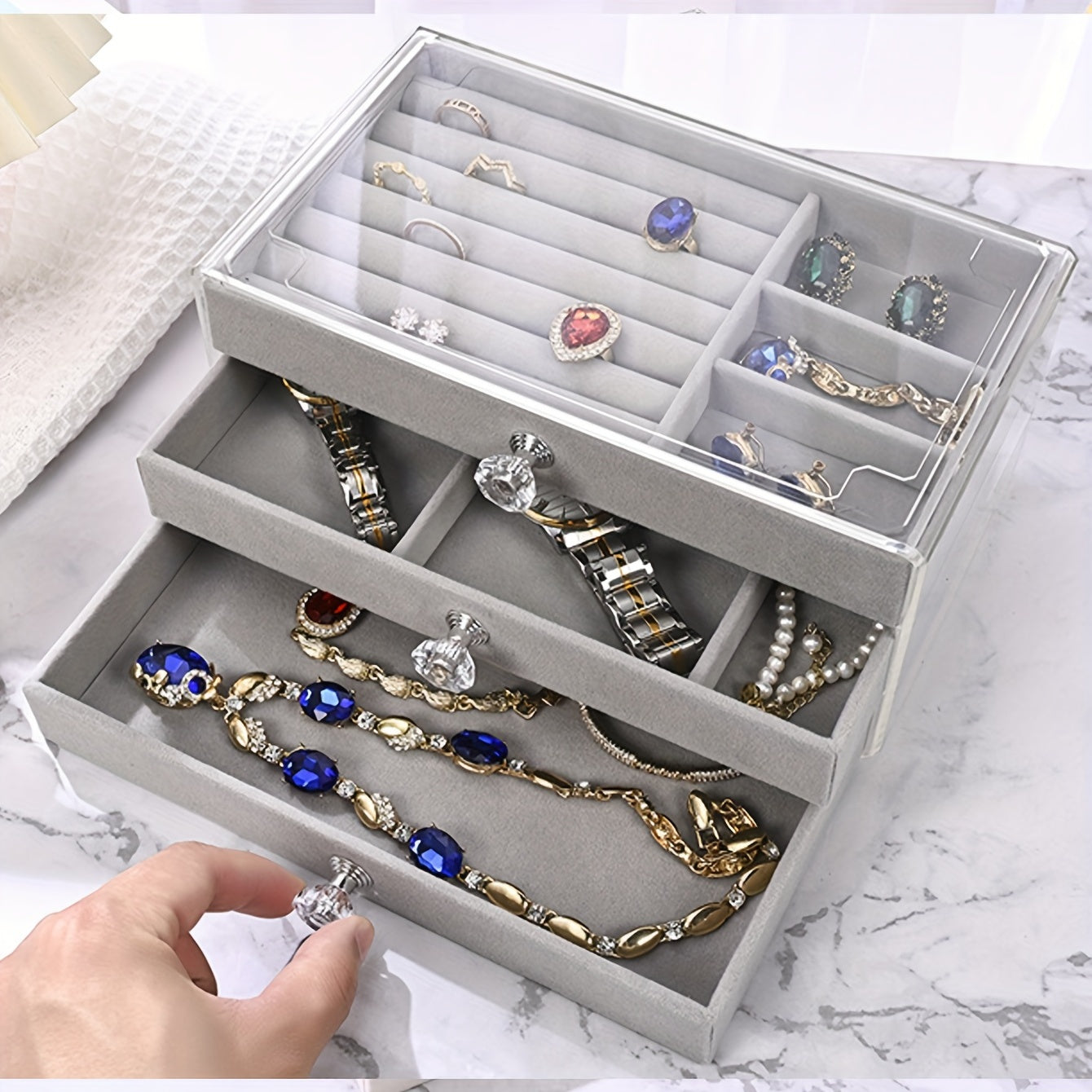 Keep your earrings and jewelry organized with this stylish flannel storage box. Perfect for your dressing table, it helps prevent dust from settling on your precious items.