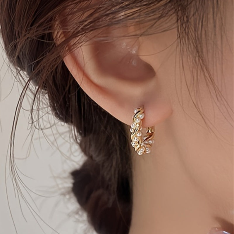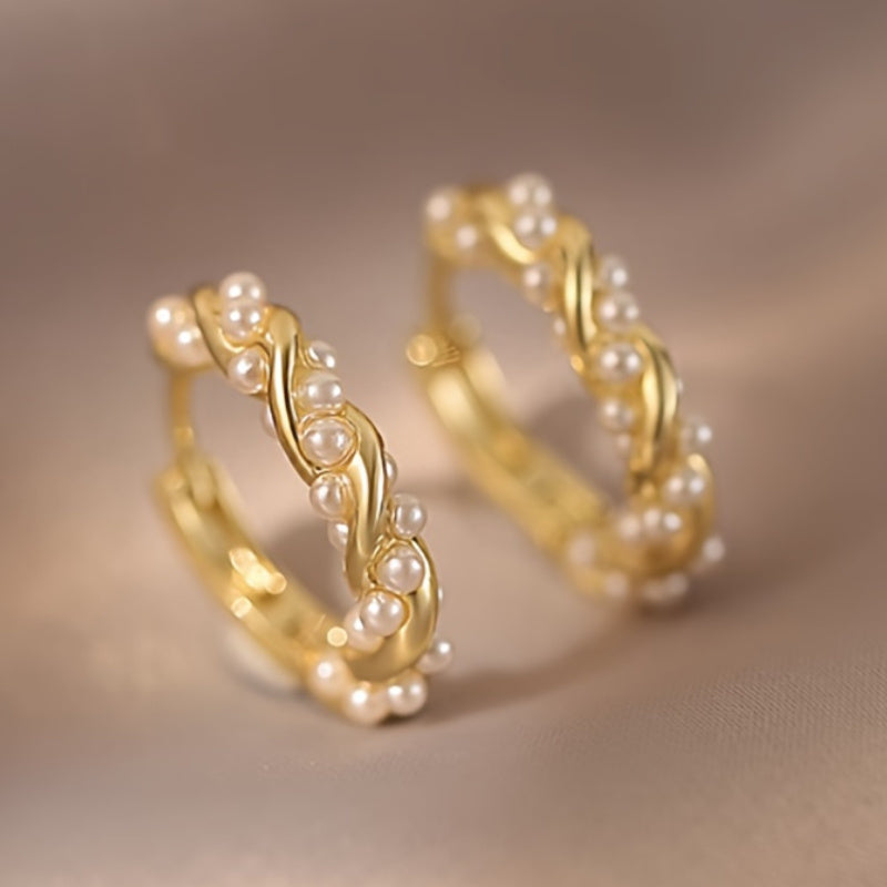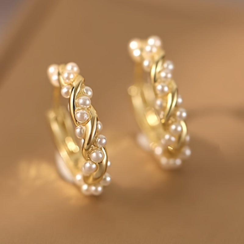 These elegant hoop earrings are perfect for weddings and romantic daily wear. Crafted with faux pearl vine design, they add a touch of sophistication to any outfit.