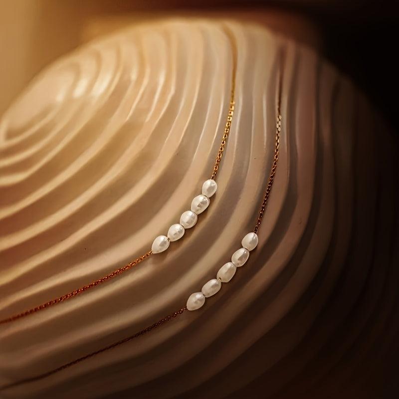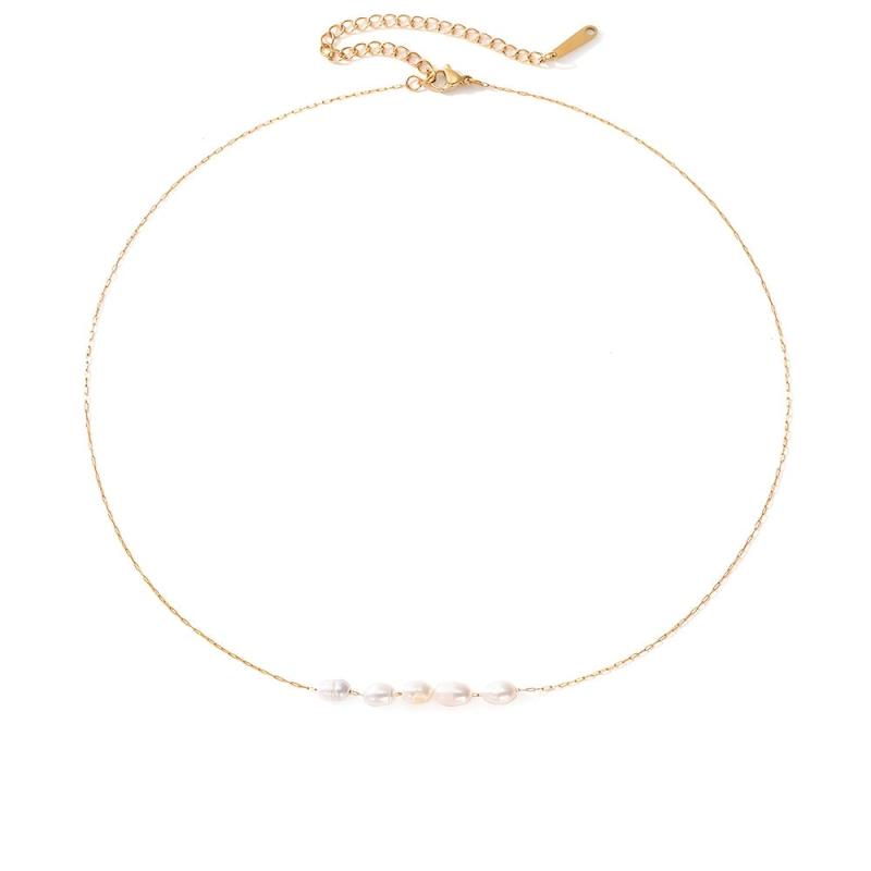 Elegant and timeless freshwater pearl pendant necklace with a 14K golden plated 316 stainless steel clavicle chain. Perfect for daily wear or as a thoughtful gift for women.