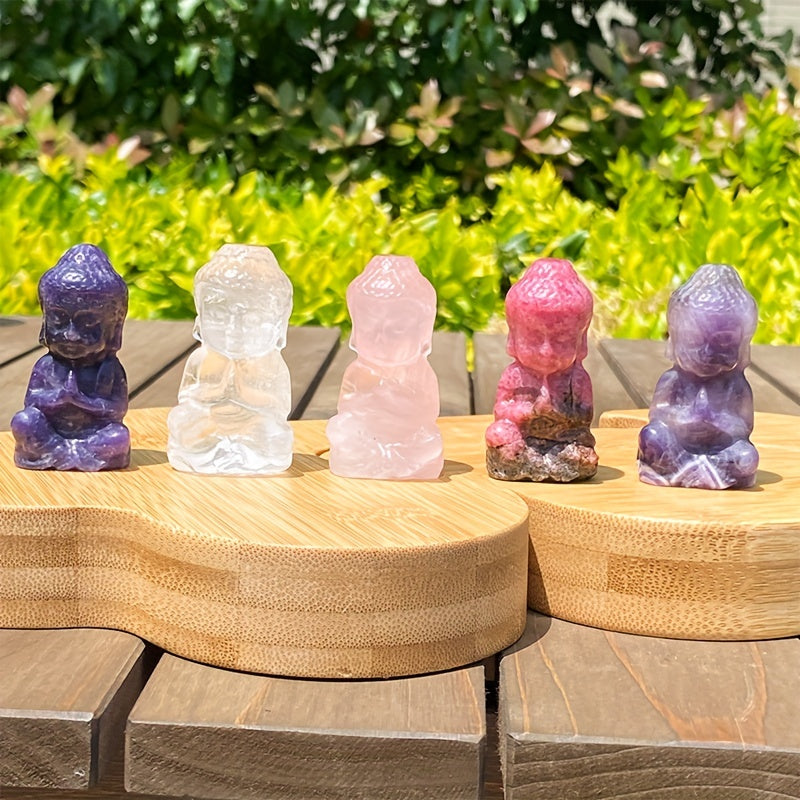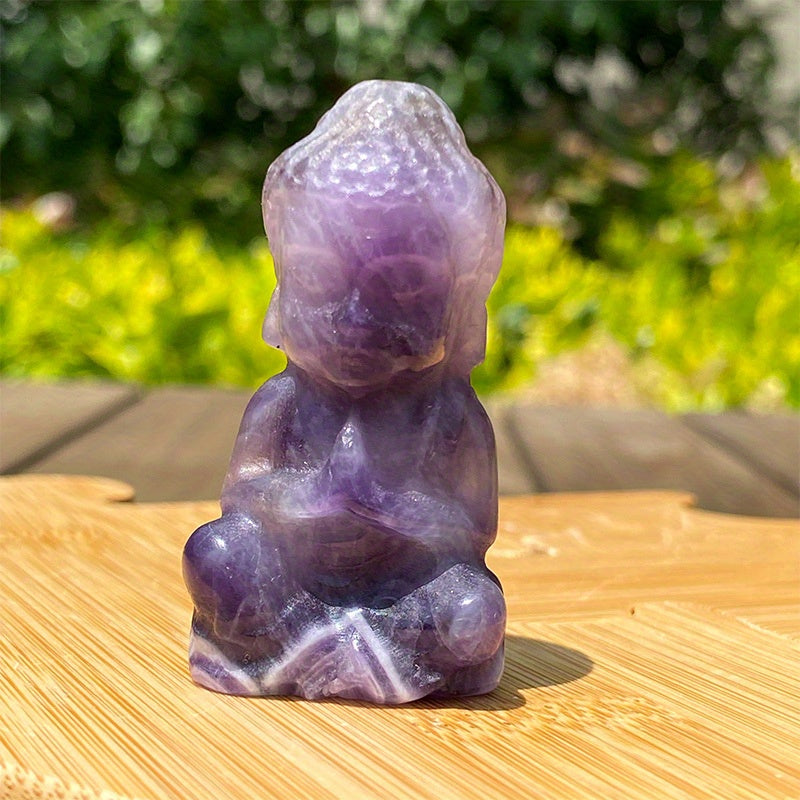 Add a touch of tranquility to your space with this beautifully crafted gemstone Buddha statue. Made from natural amethyst, clear quartz, and rose quartz, this carving ornament radiates peaceful energy and aesthetic beauty.