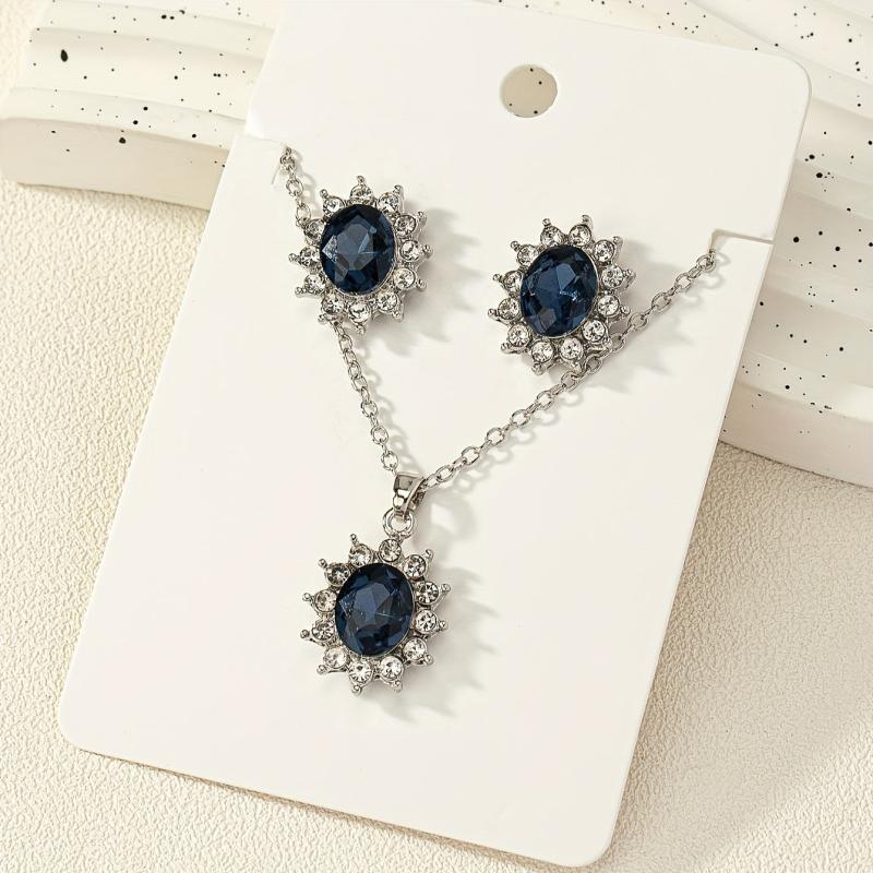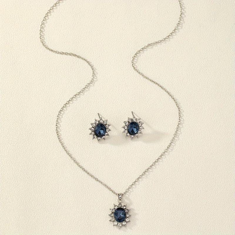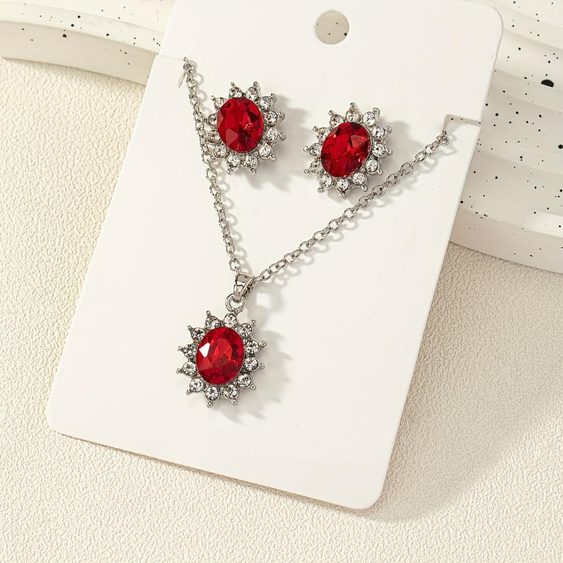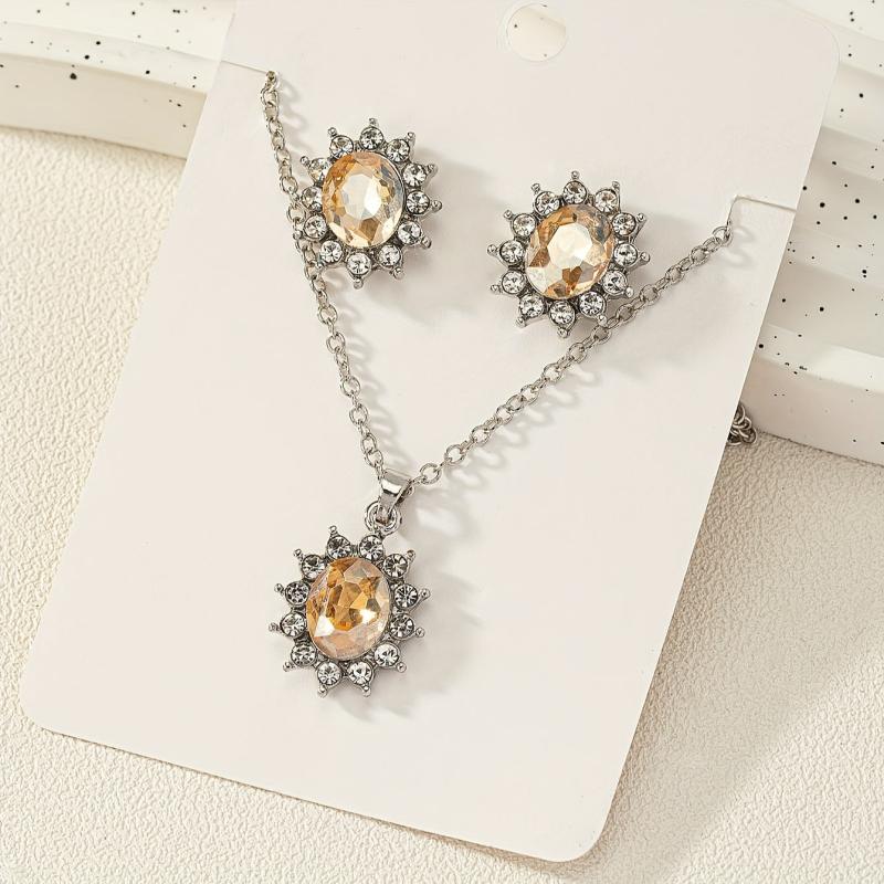 Elegant gemstone earrings and necklace set for women. Perfect for adding a touch of glamour to any outfit. Ideal for everyday wear or special occasions.