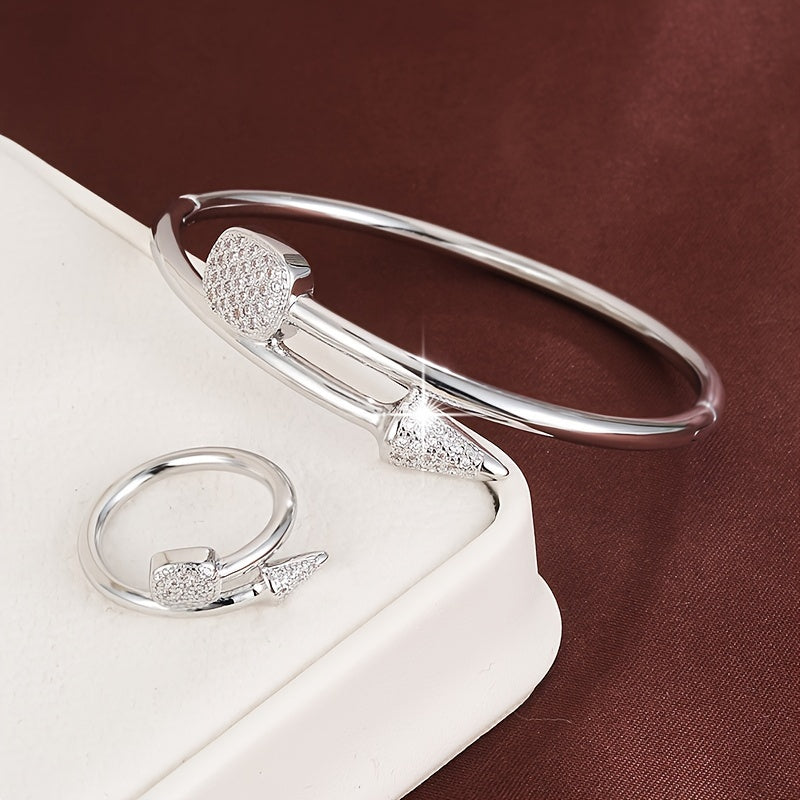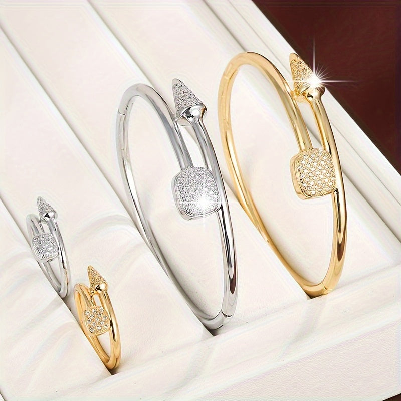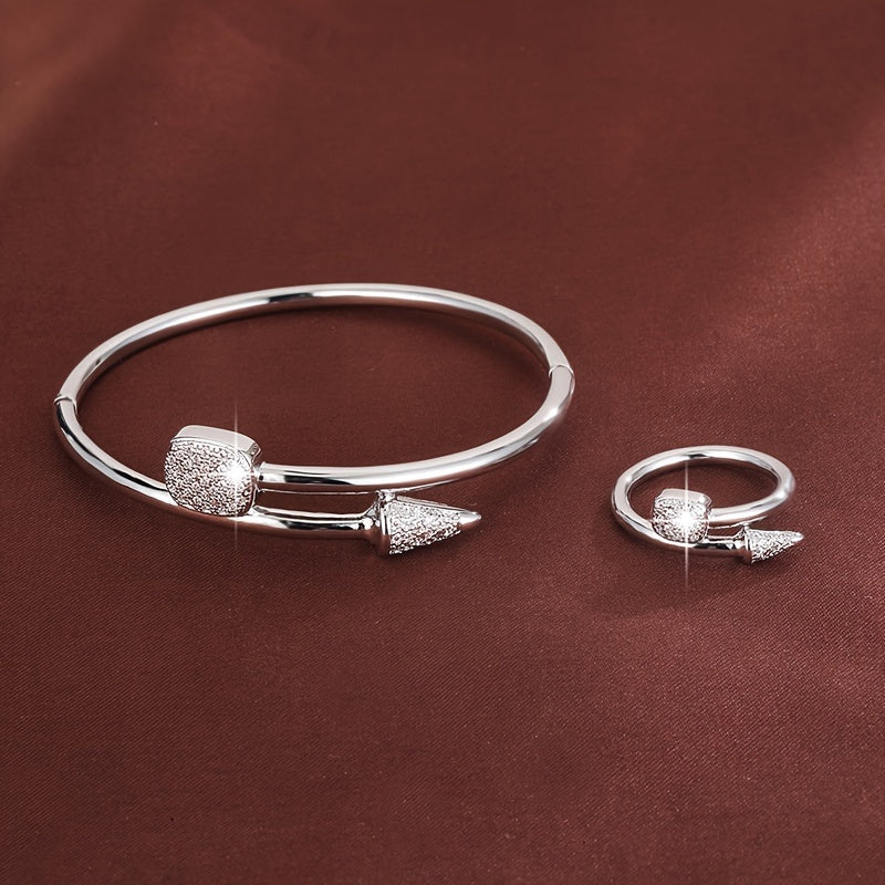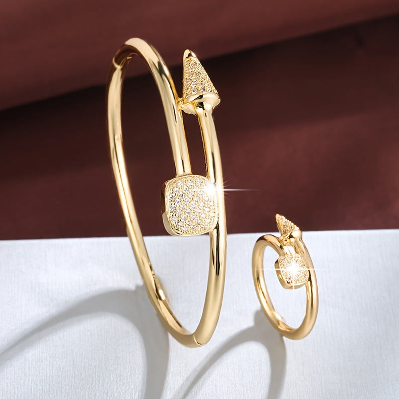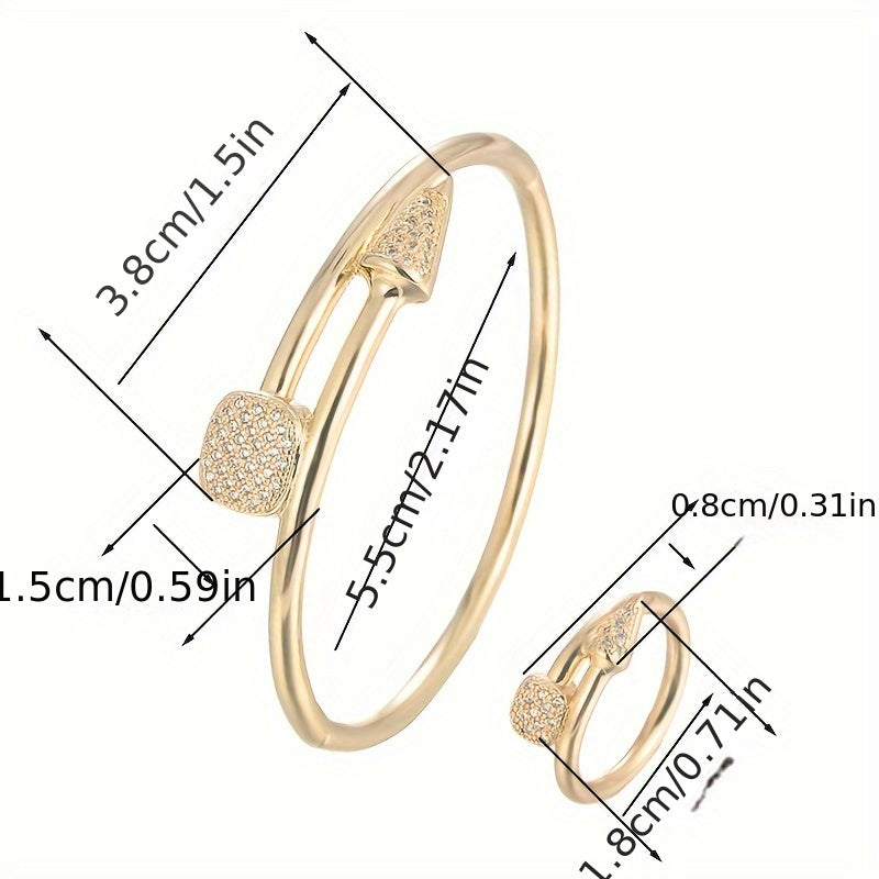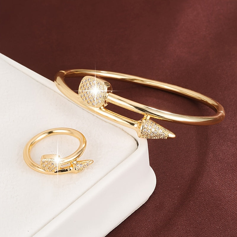 Elegant set featuring a handring & ring, copper plated with synthetic zirconia stones. Perfect for daily wear & gifting occasions.