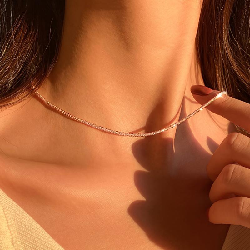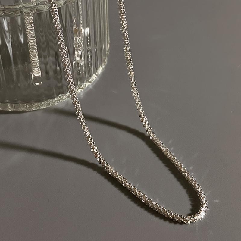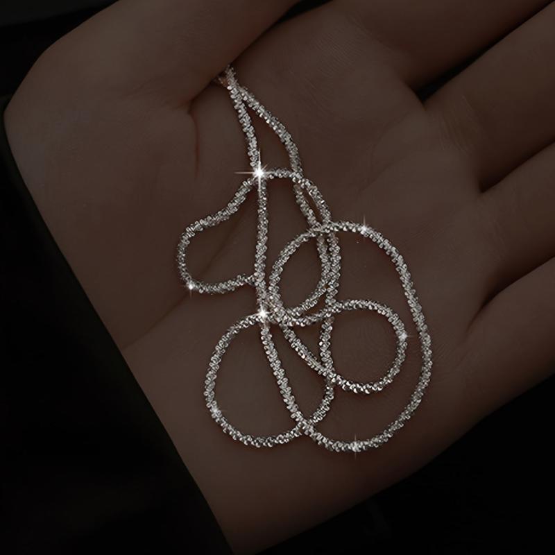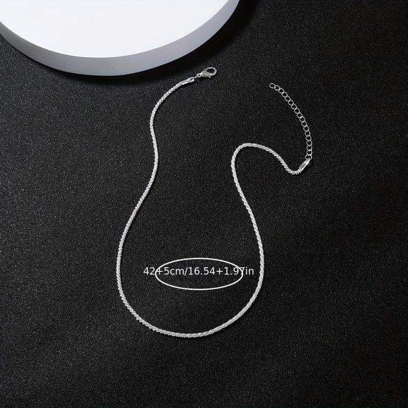 This beautiful chain necklace is the perfect accessory for any outfit. It is silver plated and features a glittery design that will sparkle in the light. A great gift for any female.
