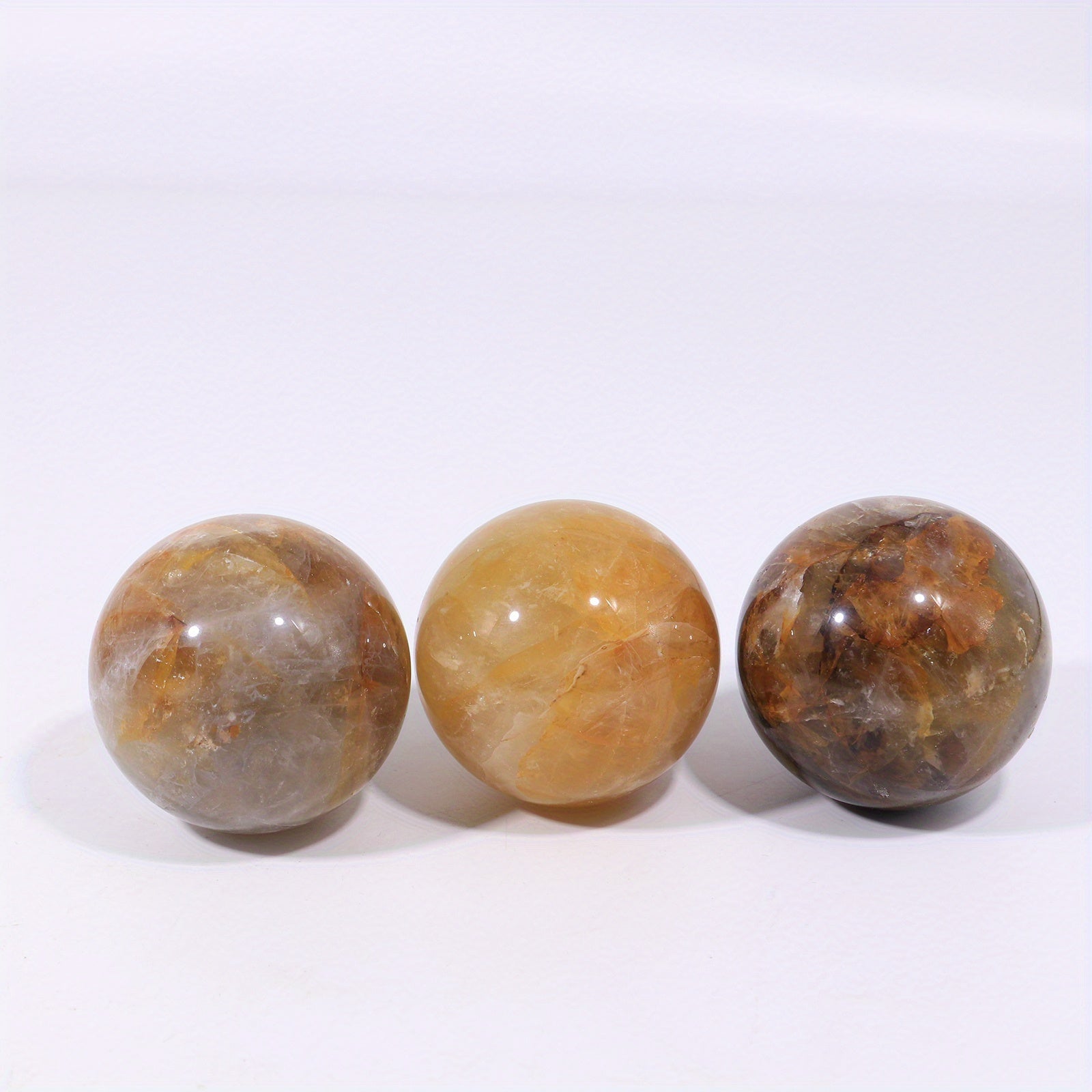 Enhance your crystal collection with this set of Golden Healer Quartz featuring a palm stone and pillar tower.