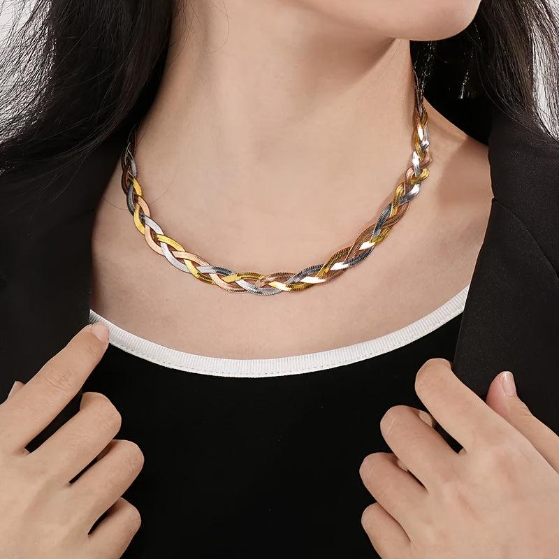 Elevate your style with this stainless steel snake chain necklace featuring a twisted rope detail. Perfect for both parties and casual attire, this snake jewelry adds a touch of elegance to any outfit.