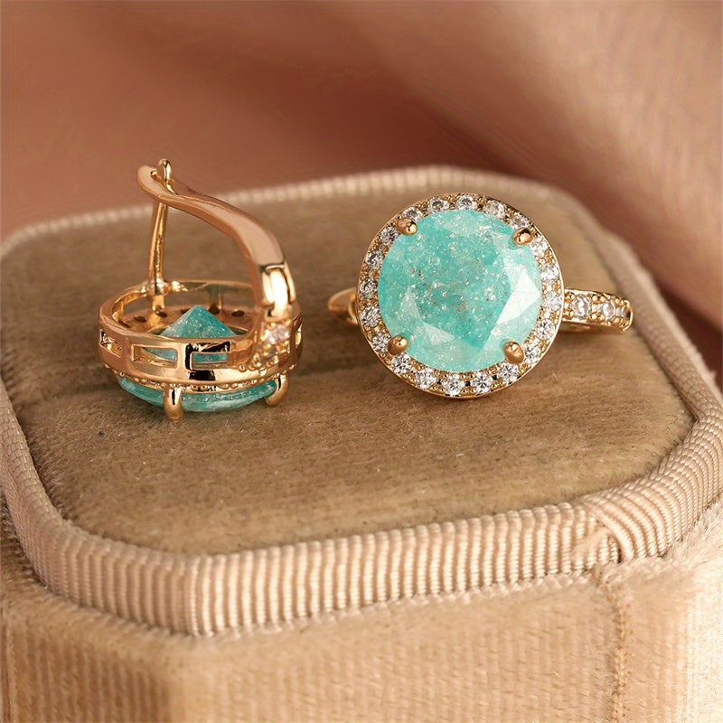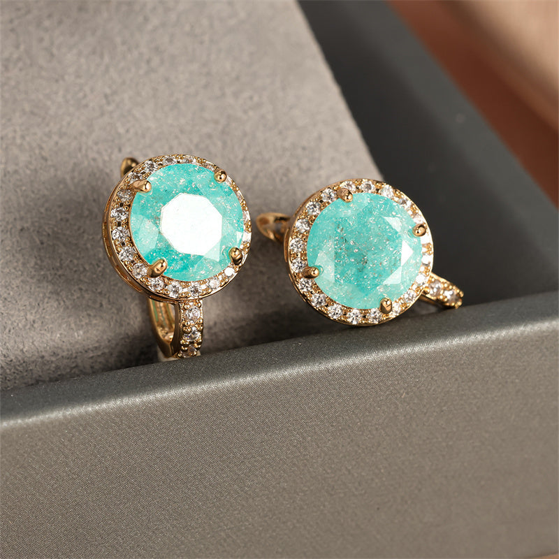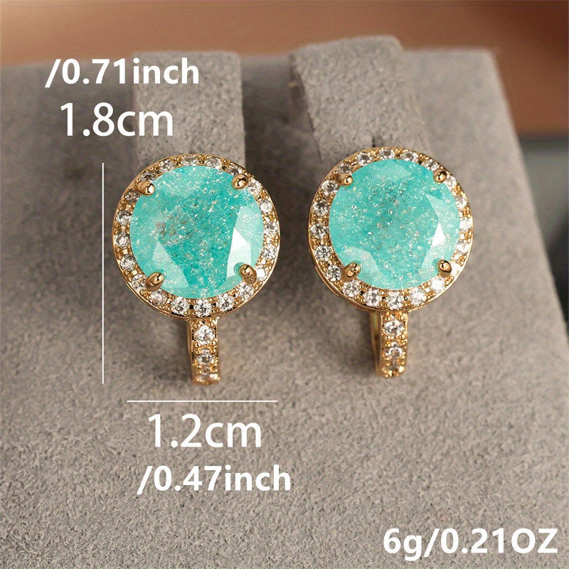 Elegant round cut zirconia earrings with a golden finish, resembling ice flowers. Perfect for weddings and special occasions.