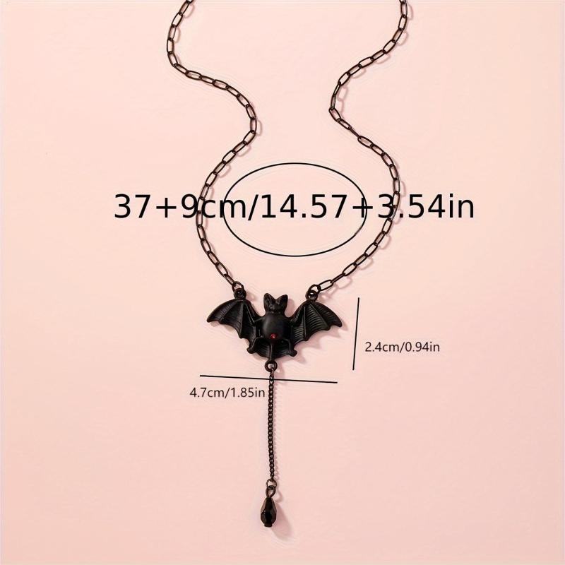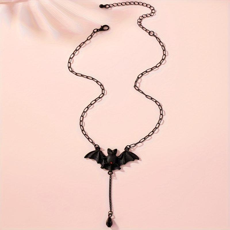 Add a touch of edgy style to your Halloween or costume party look with this gothic bat necklace. The pendant features red eyes and a teardrop bead chain for a spooky yet versatile accessory.