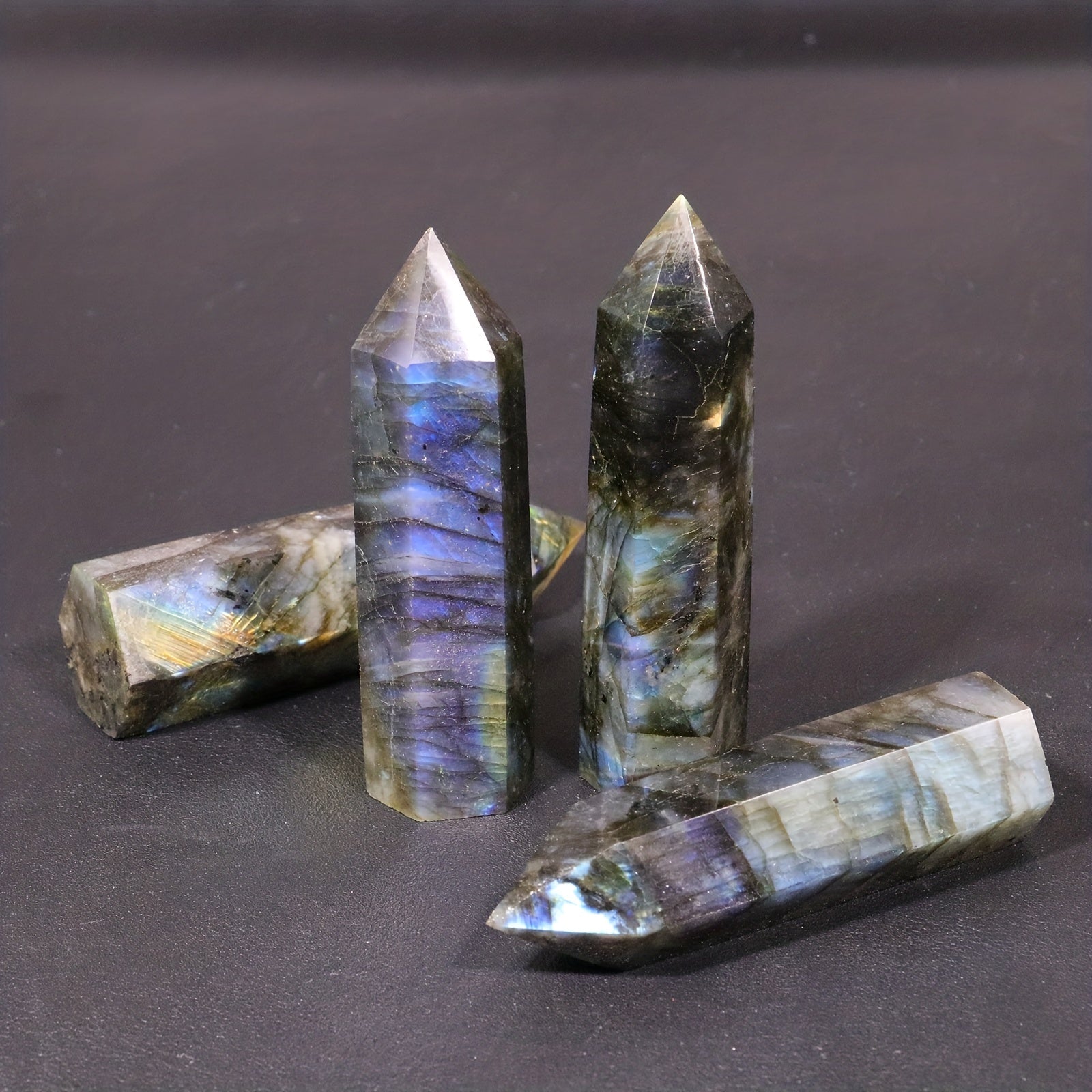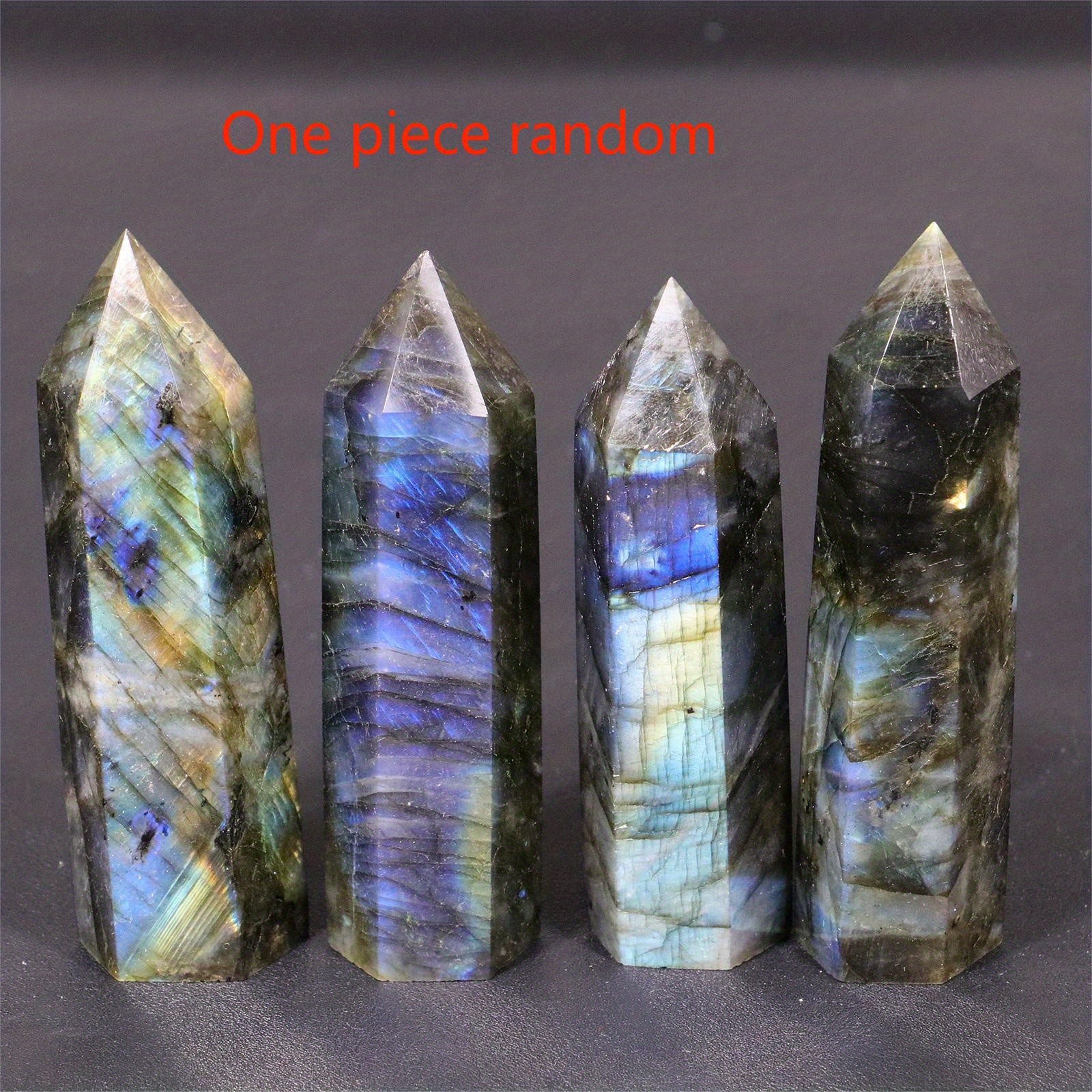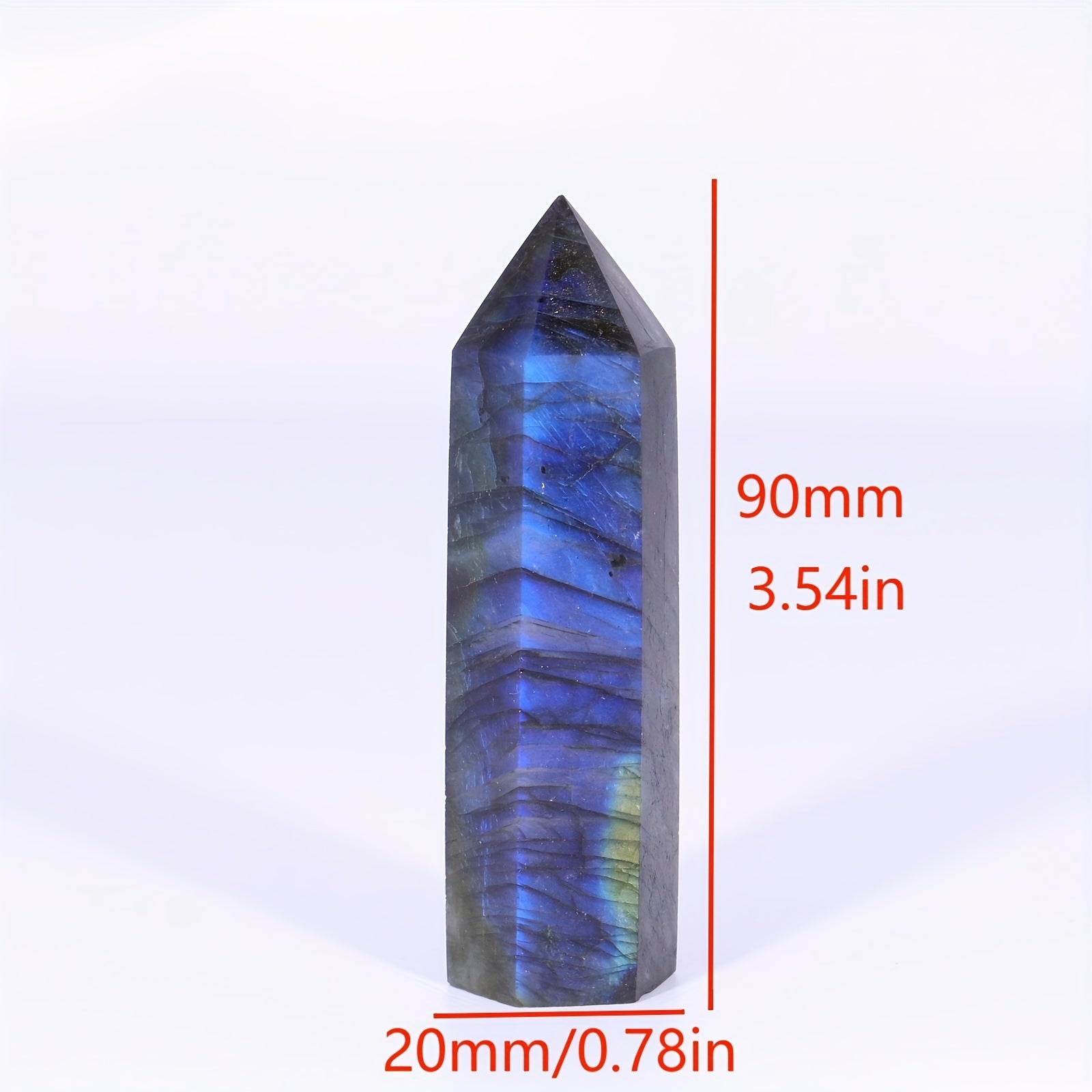 This natural crystal pillar made of healing Labradorite exudes calming energy. It is perfect for crystal healing practices and can be used as a desk decoration or bedside table accent.
