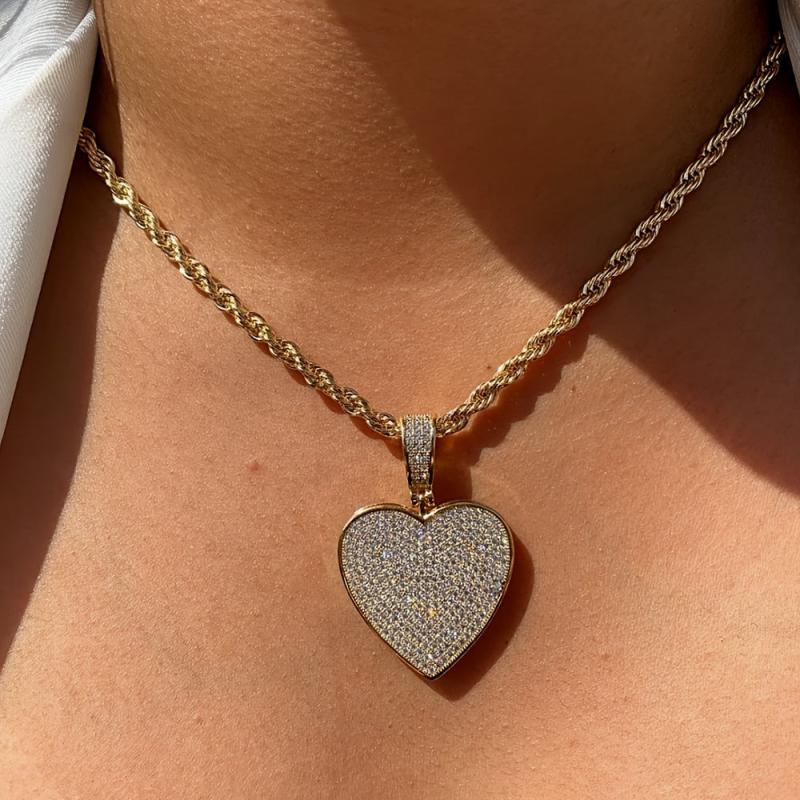 Add a touch of elegance to your outfit with this lightweight, golden plated heart pendant necklace featuring zirconite. Perfect for casual attire or special occasions.