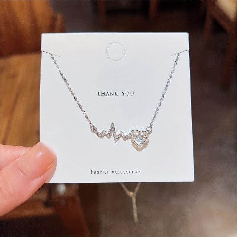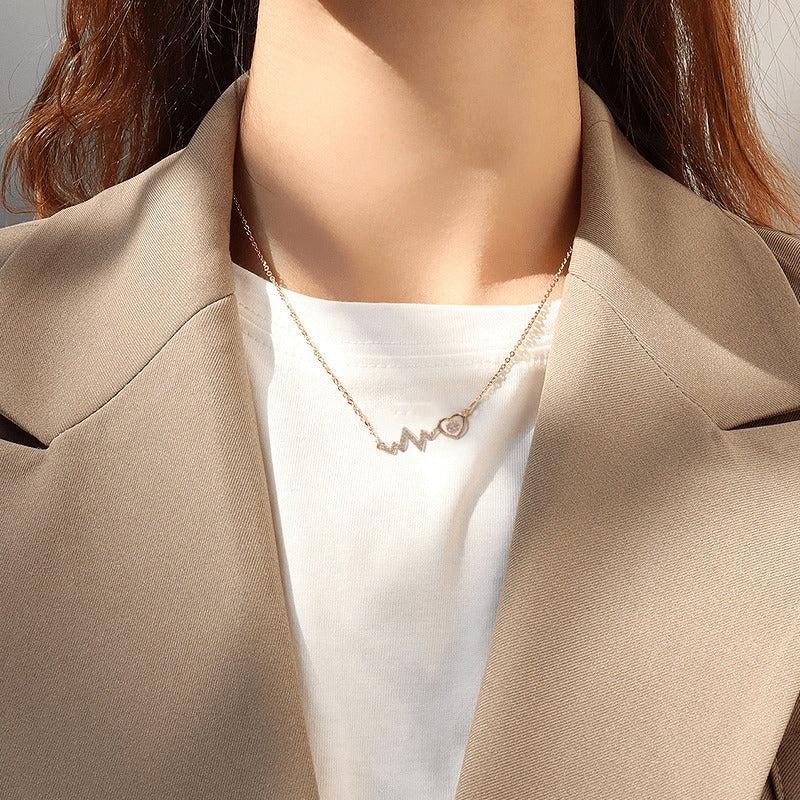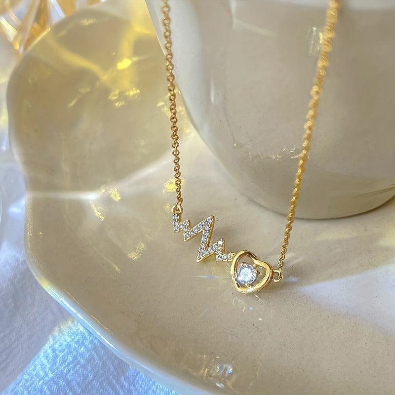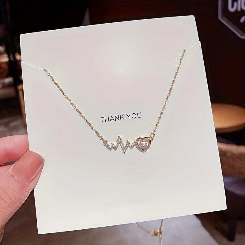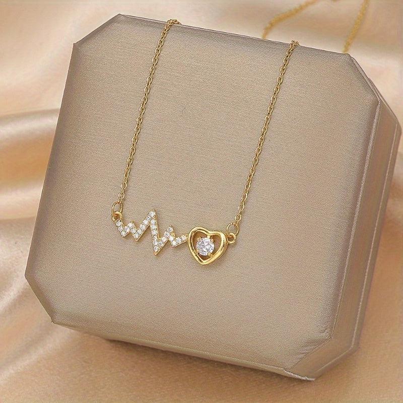 Heart Pendant Necklace Women Golden Stainless Steel Chain Zirconia Stones Gift
