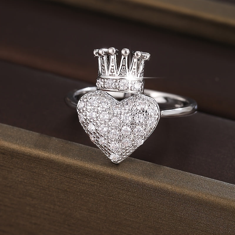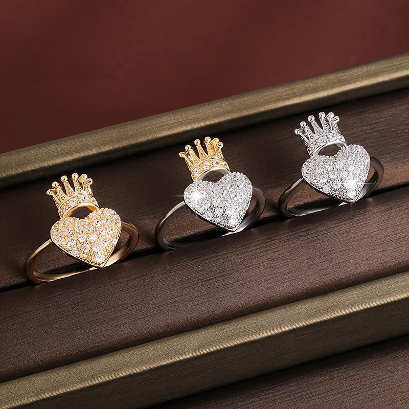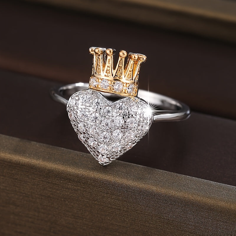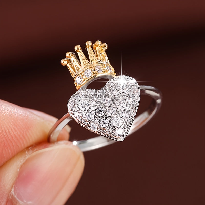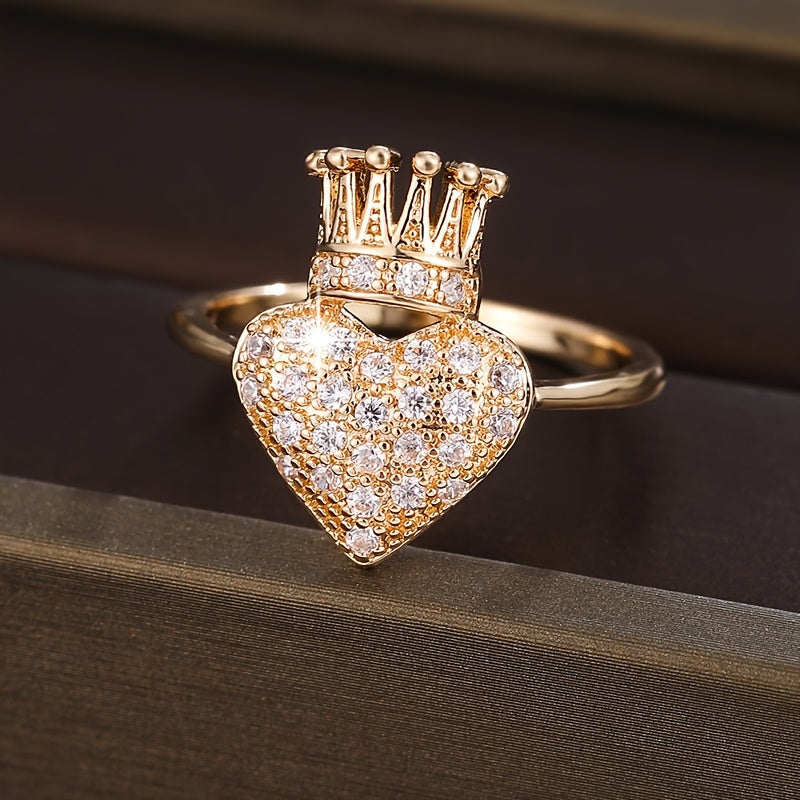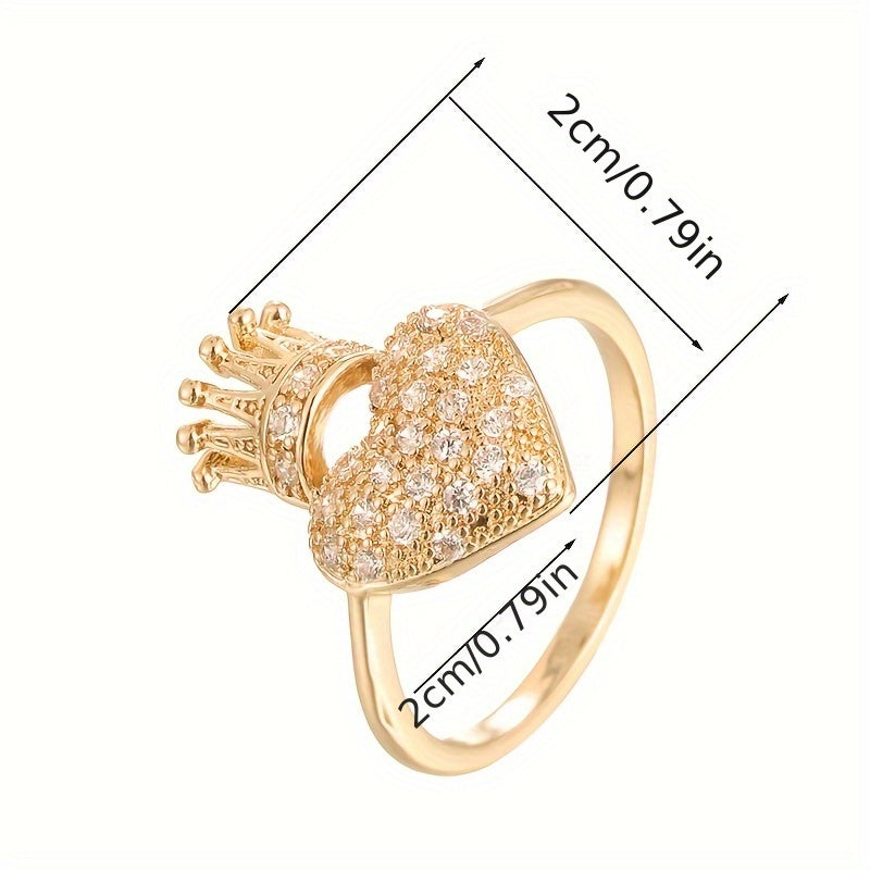 This heart shaped crown ring features sparkling cubic zirconia stones. Perfect for daily wear or parties, this golden-tone ring is a romantic accessory that adds a touch of elegance to any outfit.