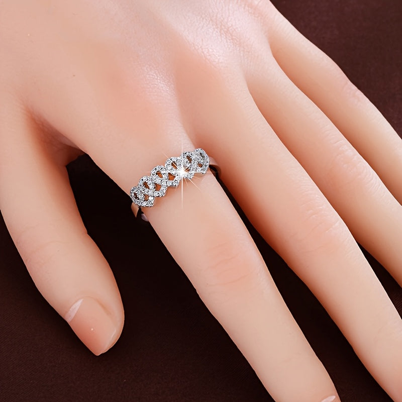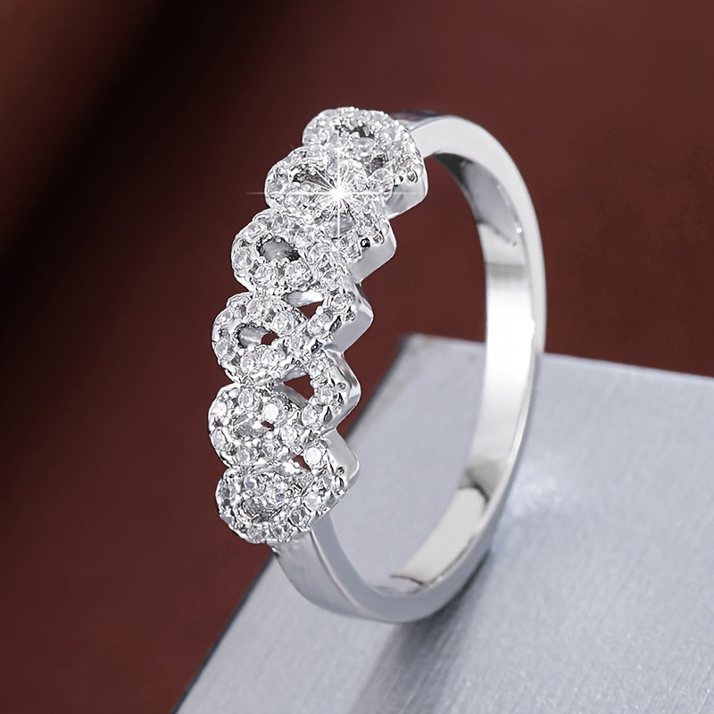 This elegant women's ring features a single line wrapping around a heart shaped zirconia set, adding a touch of sophistication to any outfit.