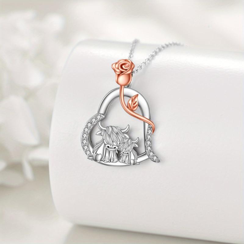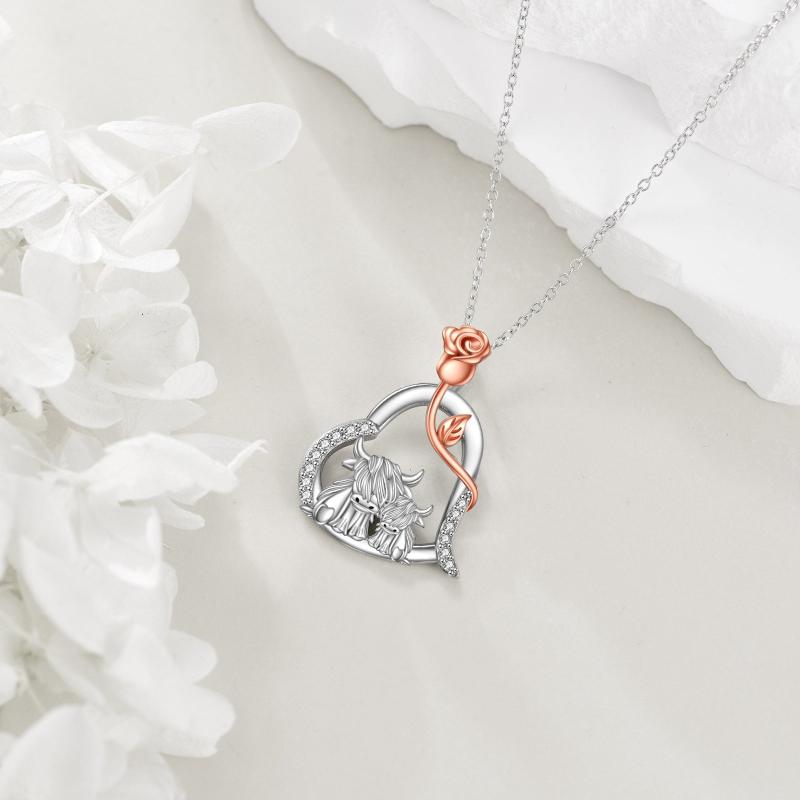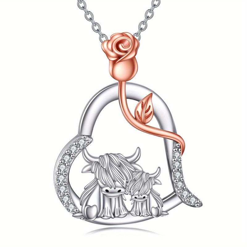 This lovely necklace features a highland cow design, perfect for mothers and daughters. Made of sterling silver, this beautiful piece of jewelry is a great gift for moms and daughters alike.