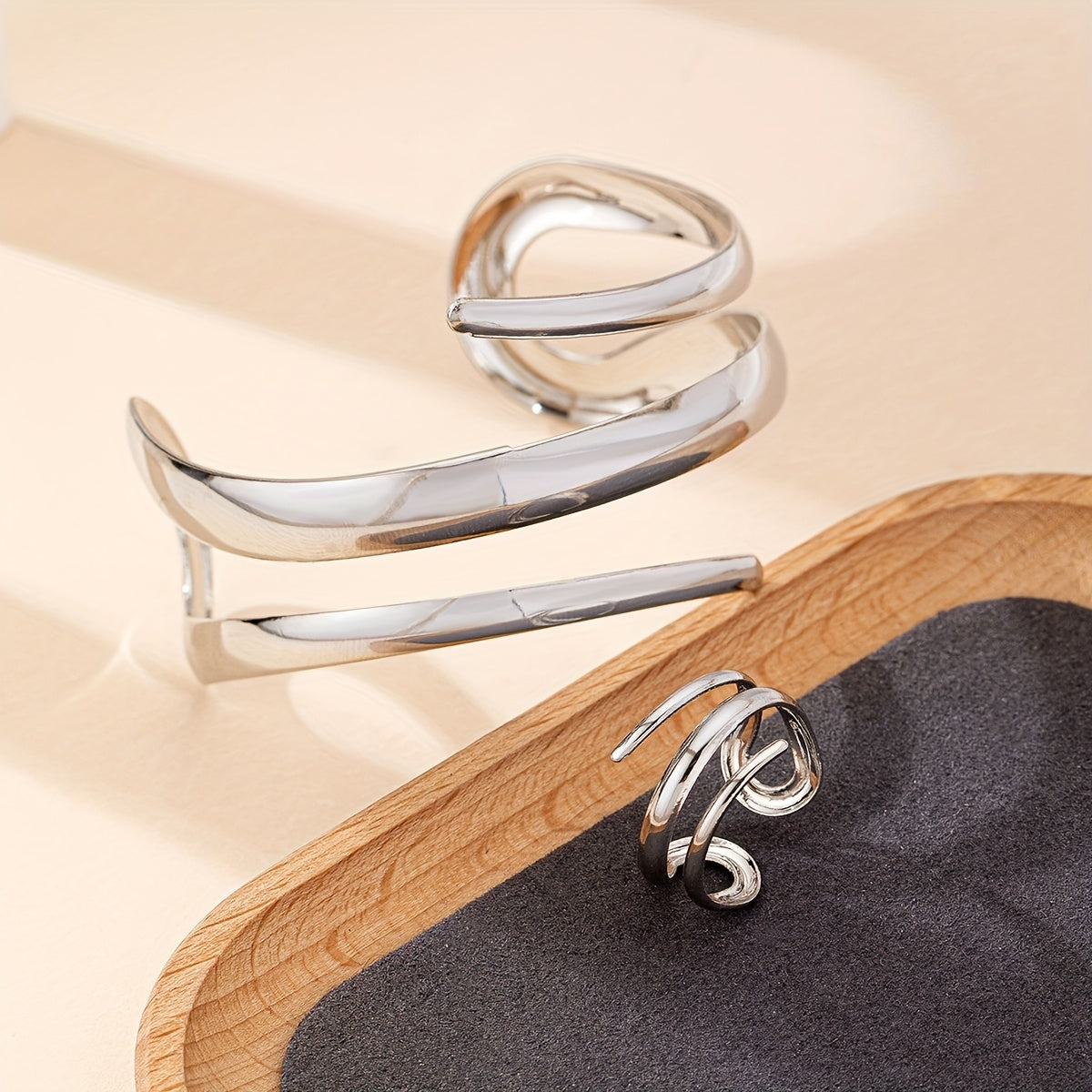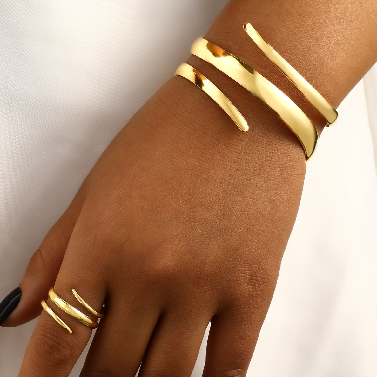 • Irregular open bangle ring set
