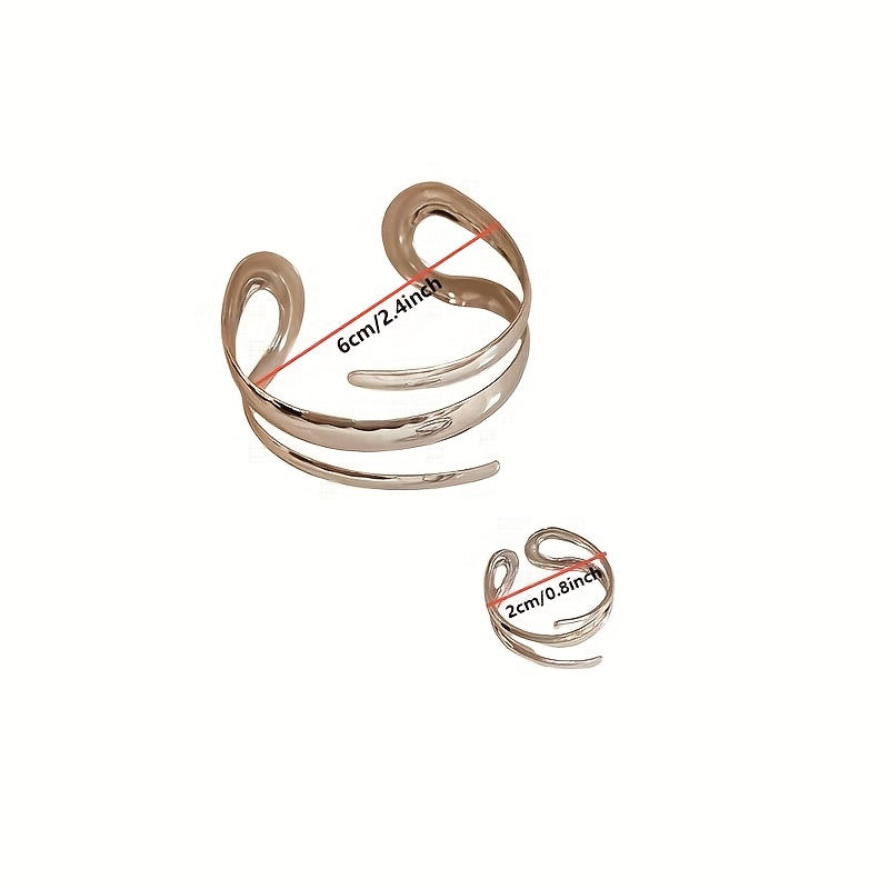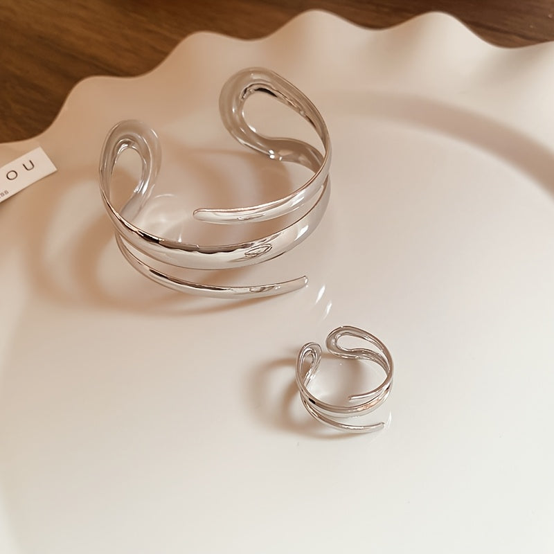 Irregular Women's Bangle Ring Set Stainless Steel Bohemian Style