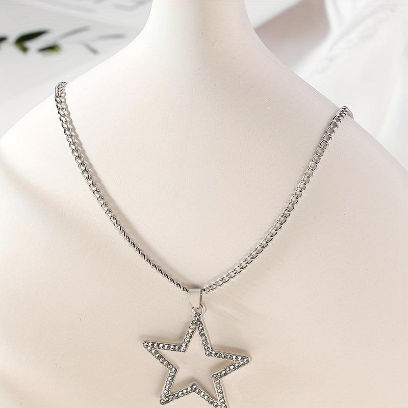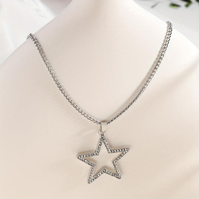 This stylish necklace features a Japanese-inspired design with a full rhinestone five-pointed star pendant that adds a touch of glamour to any outfit.