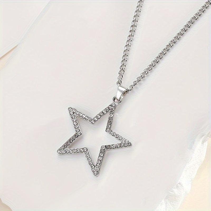 Japanese Hollow Star Rhinestone Pendant Necklace