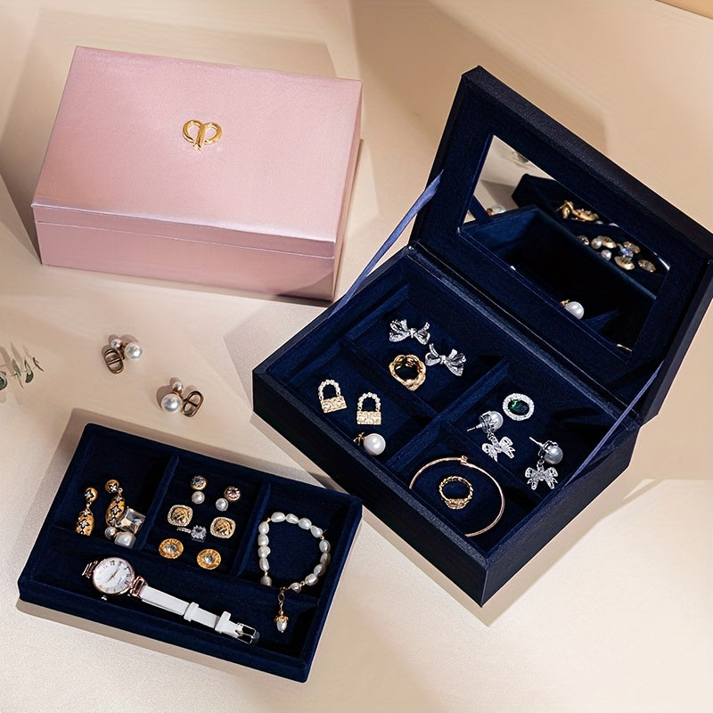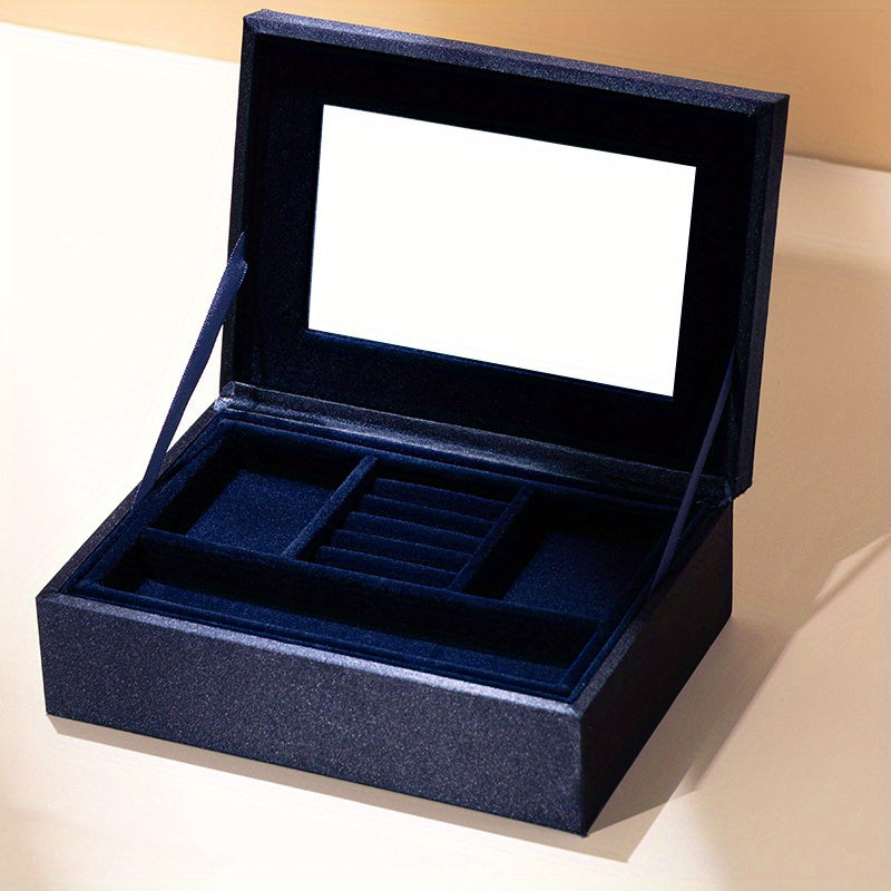 Jewelry Storage Box With Mirror Organizer For Necklace Earrings Ring