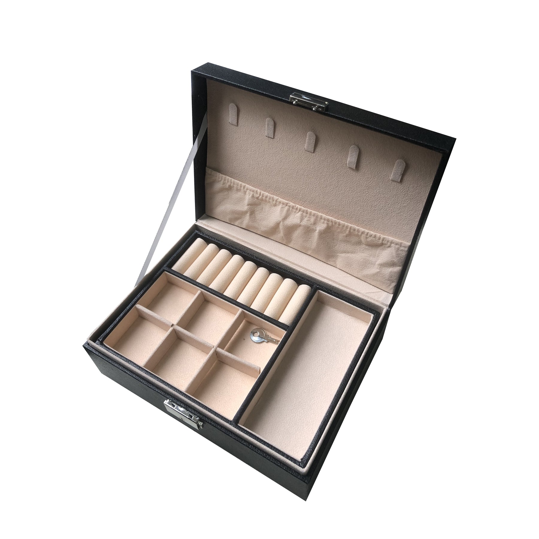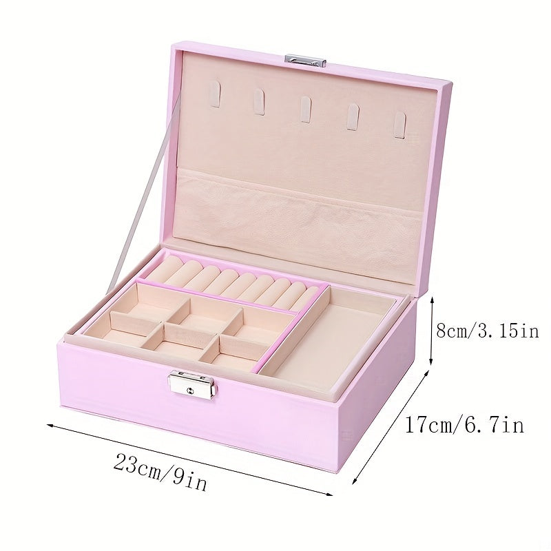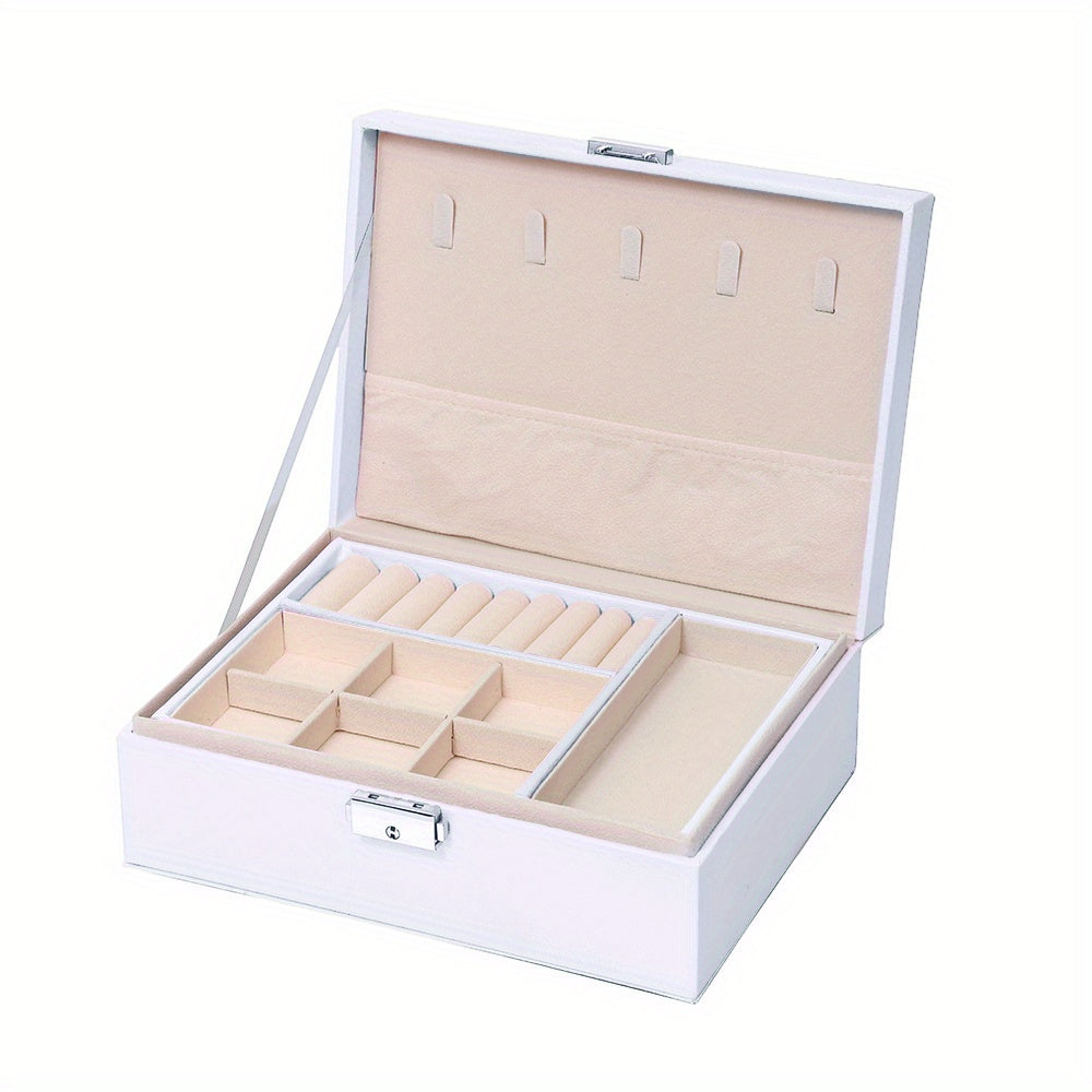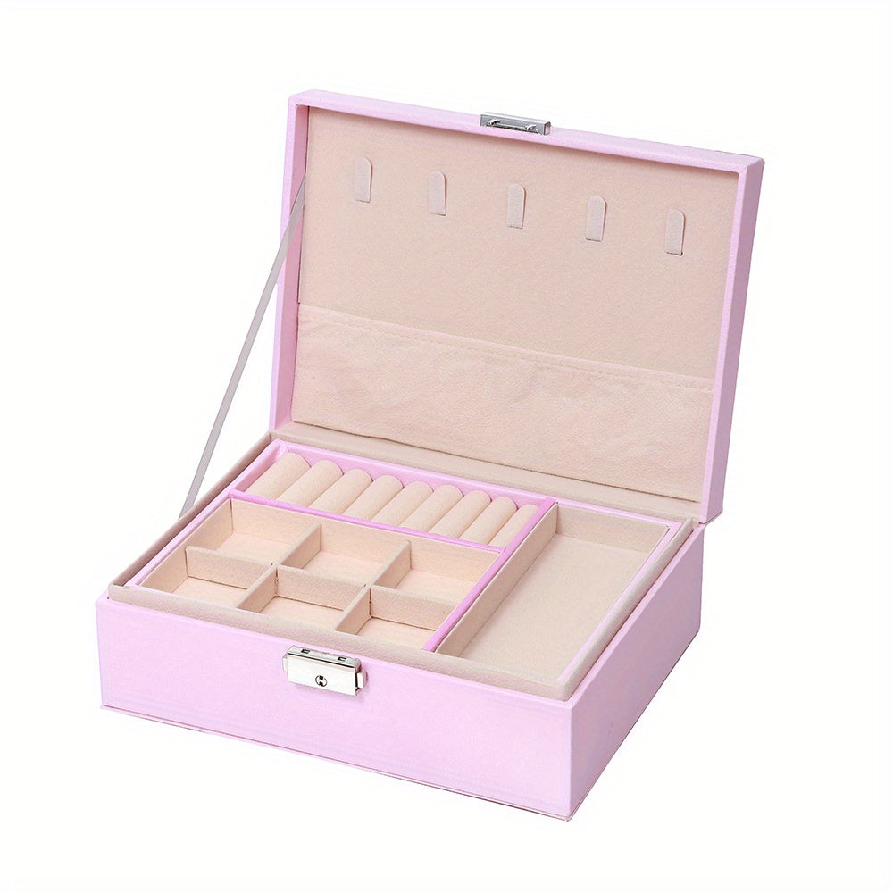 Keep your earrings, necklaces, and rings organized with this double-layer jewelry box. Ideal for storing and displaying your precious accessories.