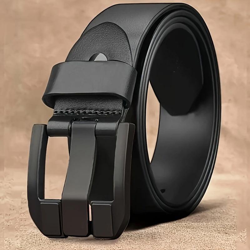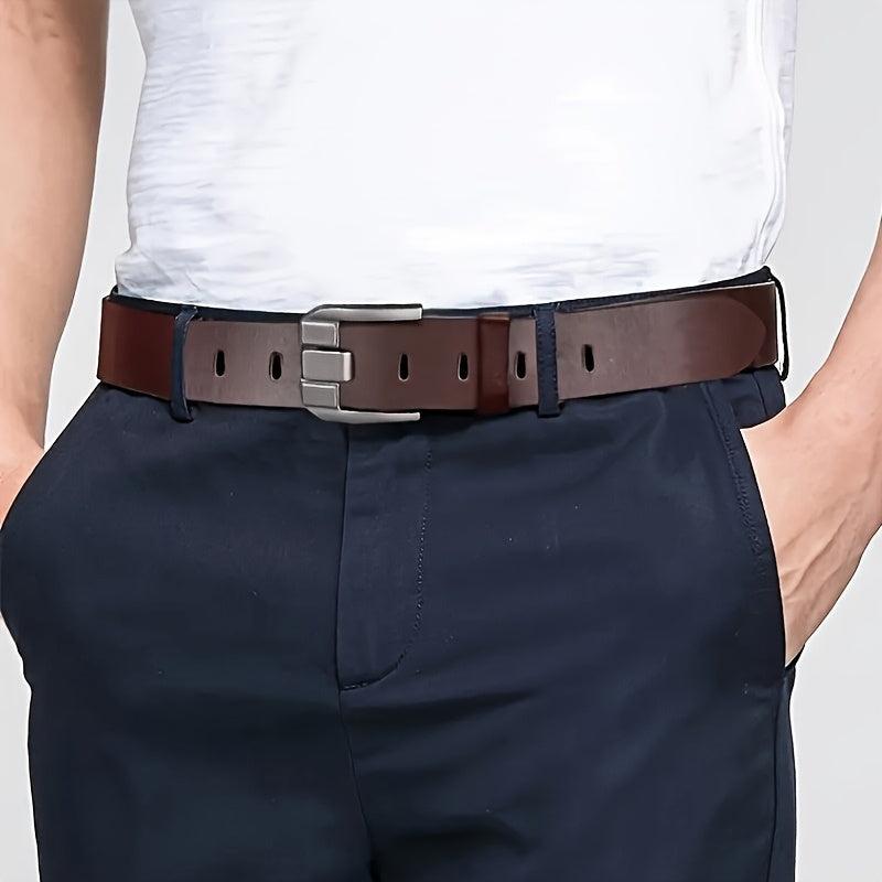 Men's Classic Leather Belt with Metal Buckle for Work Business Casual Wear