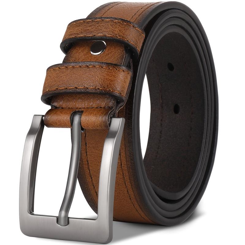 Men's Western Style Belts Casual Faux Leather Alloy Buckle Brown and Tan