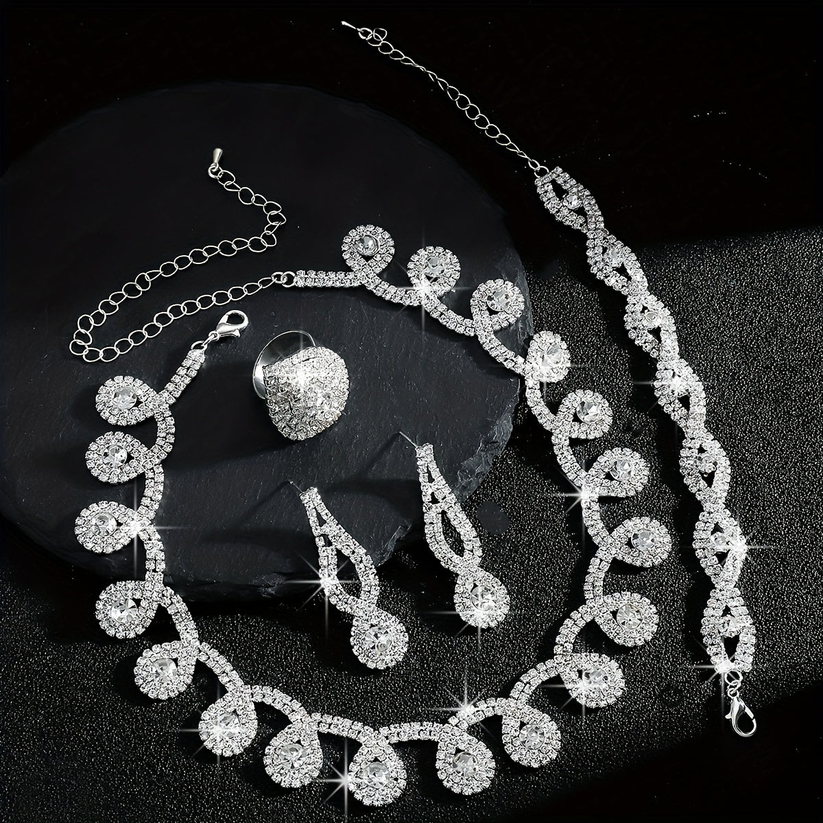 Middle Eastern Bridal Set: Flower Drop Necklace Bracelet Earrings & Ring