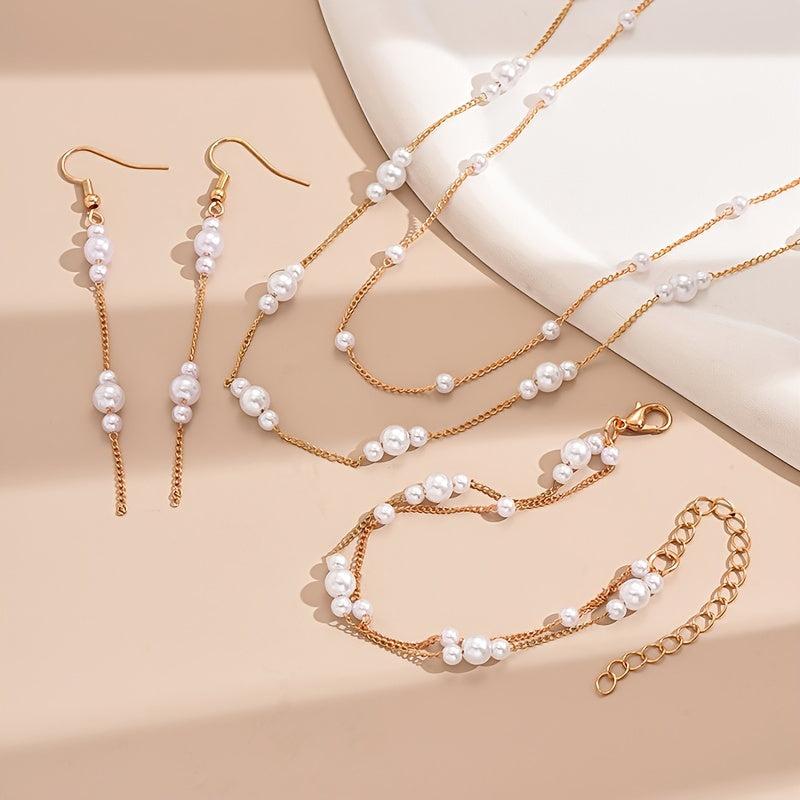 Elevate your style with this 4-piece minimalist jewelry set featuring a layered necklace, earrings, and bracelet. Perfect for everyday wear or special occasions.