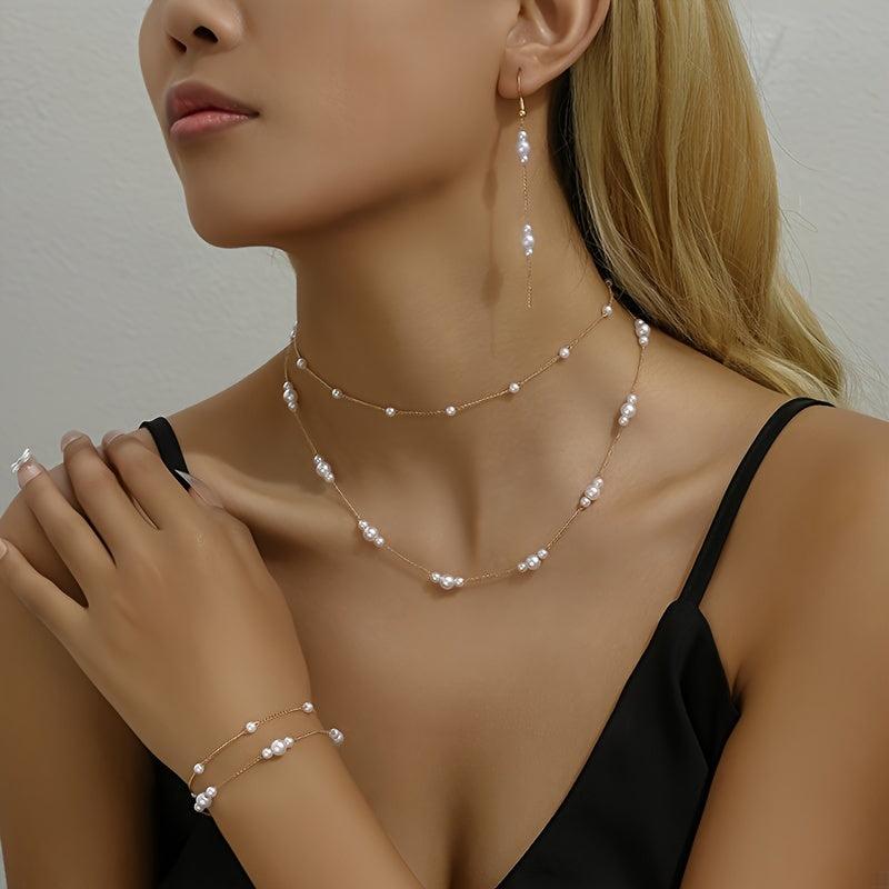 Minimalist Layer Necklace Earrings Bracelet Set for Women