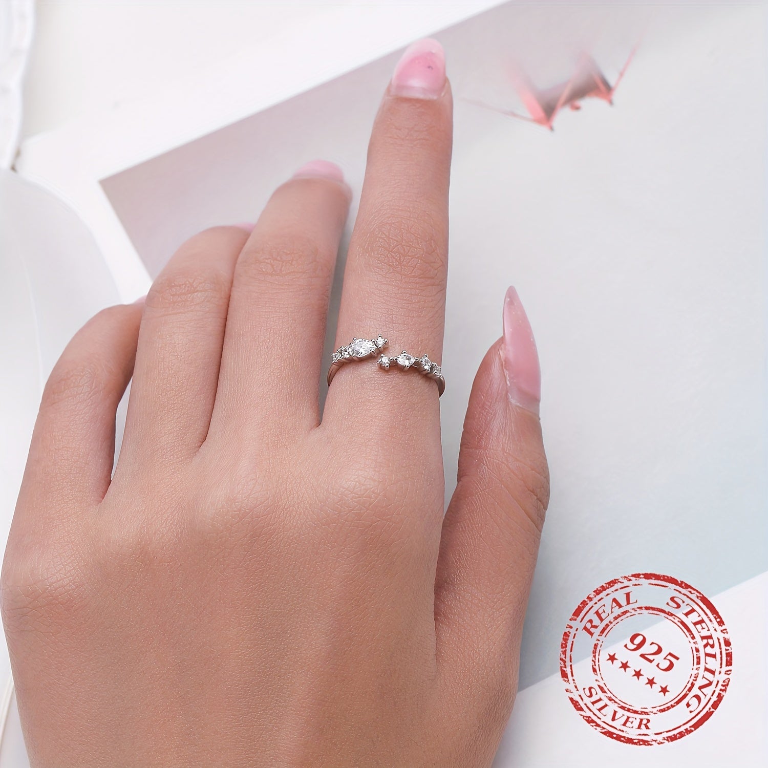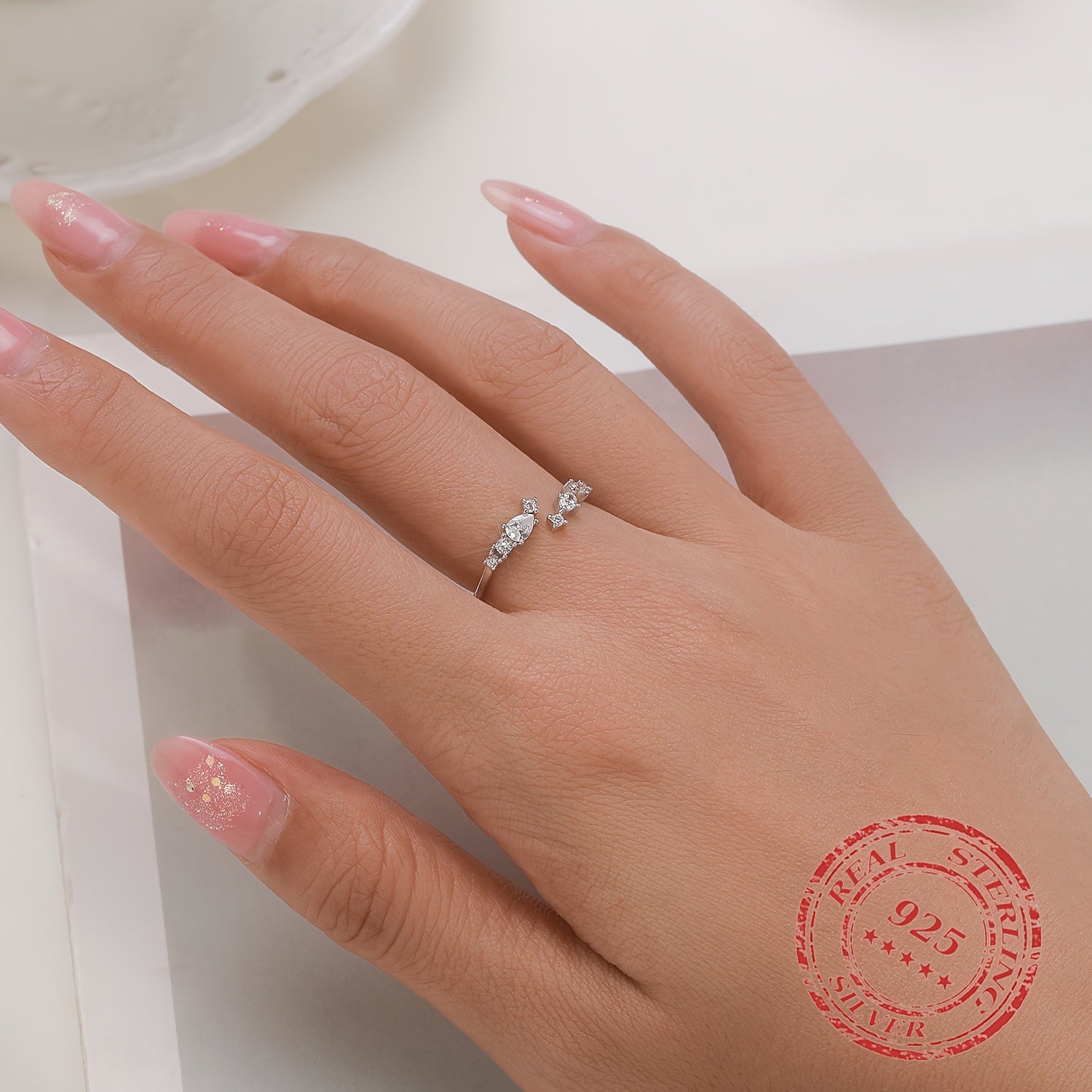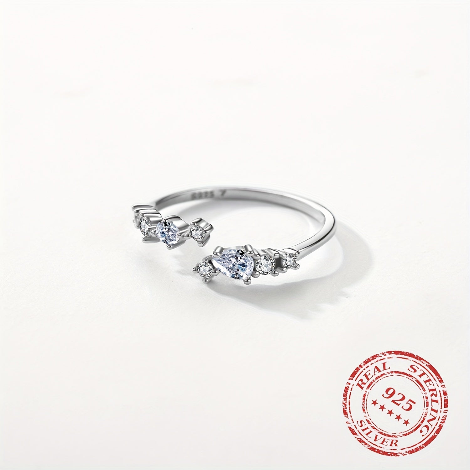 This elegant ring features clear zirconia stones set in 925 sterling silver. Perfect for anniversaries or everyday wear, this minimalist design exudes timeless elegance and sophistication.
